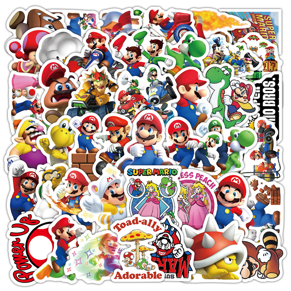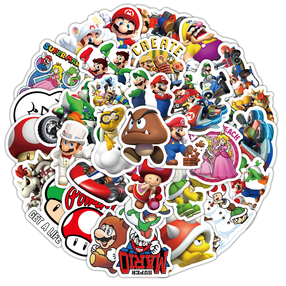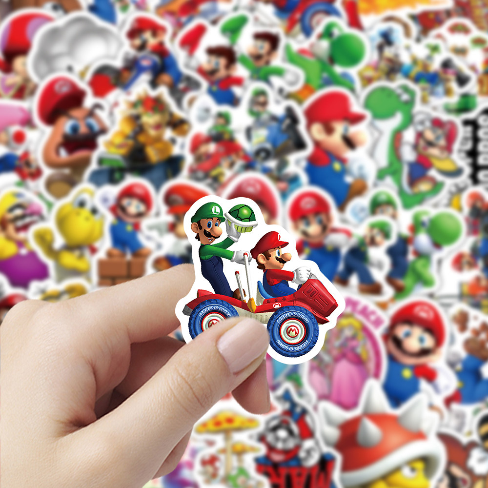 饰防水贴画儿童学生手帐手机壳行李箱笔记本标签贴纸 100张可爱卡通马里奥ins风diy自粘装 大图释官方授权