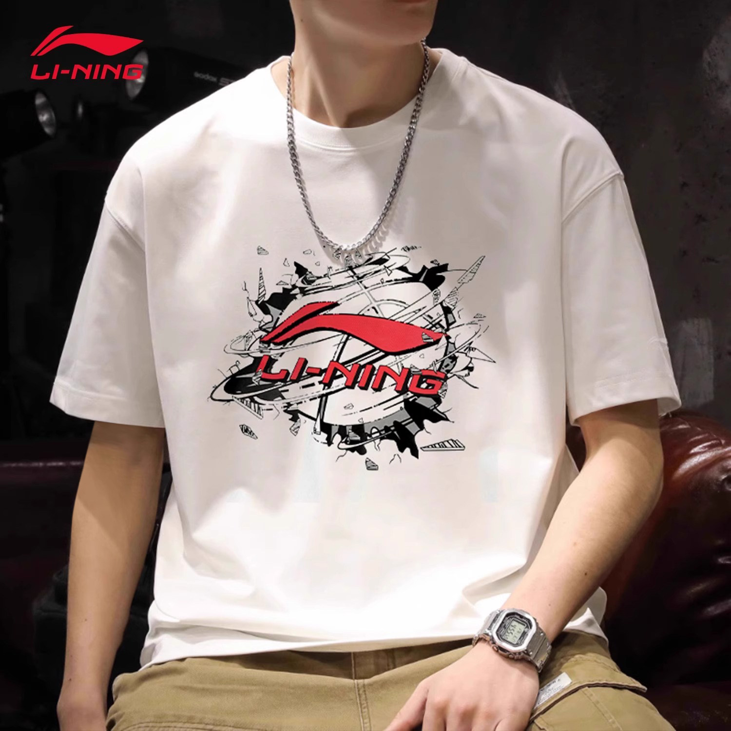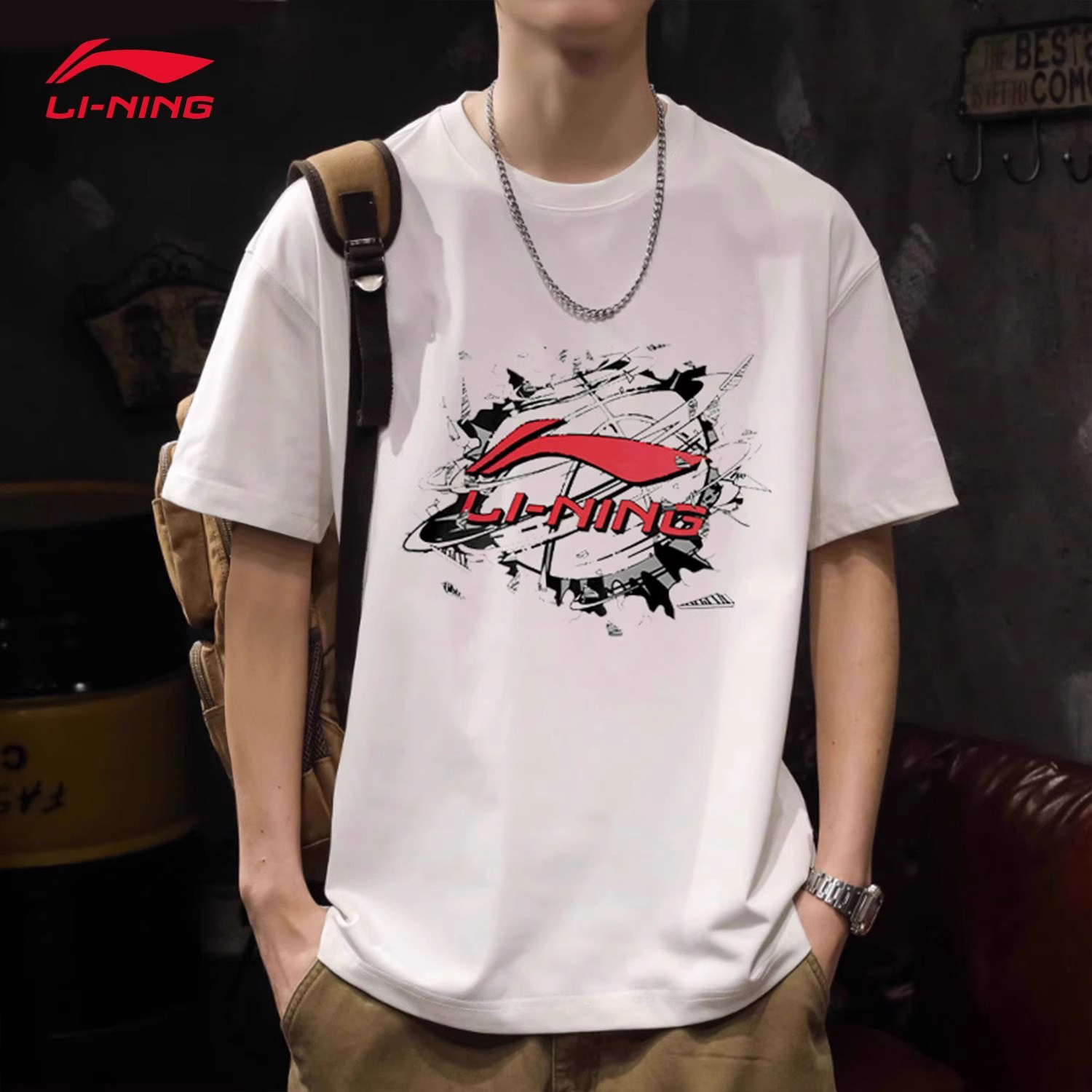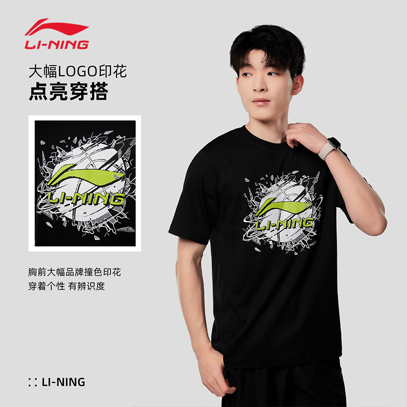 百搭纯棉半袖 李宁短袖 新款 2025夏季 印花潮流圆领宽松运动t恤 男款