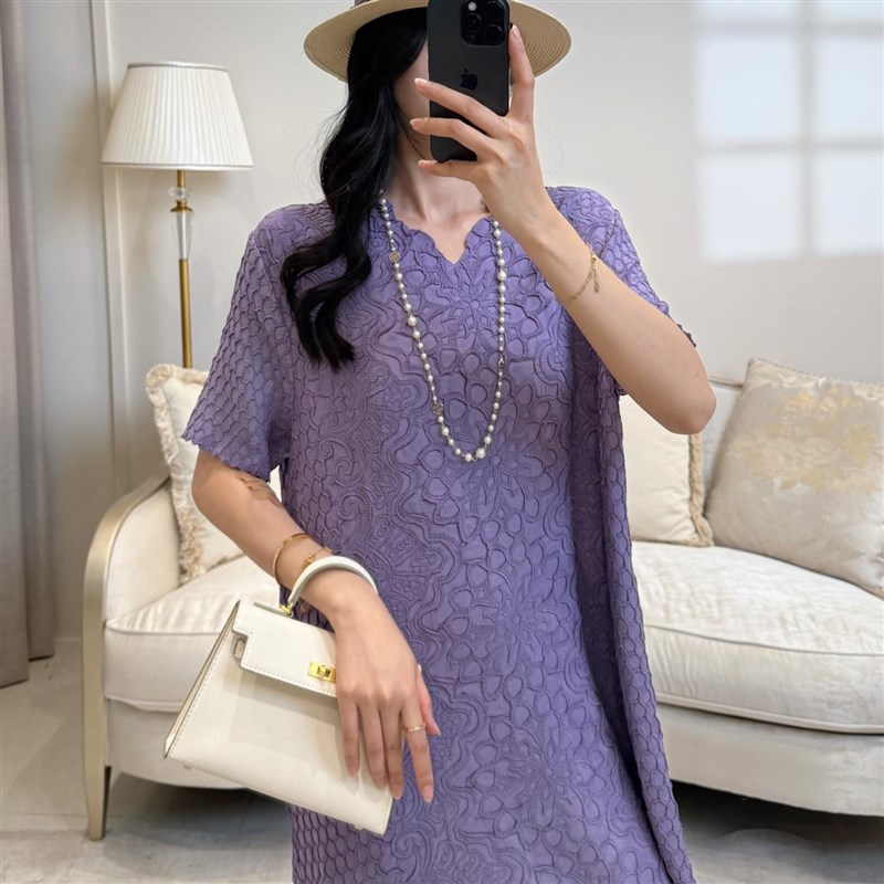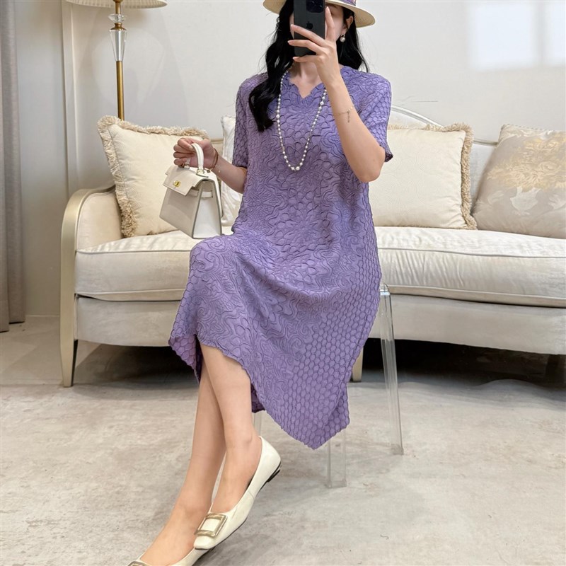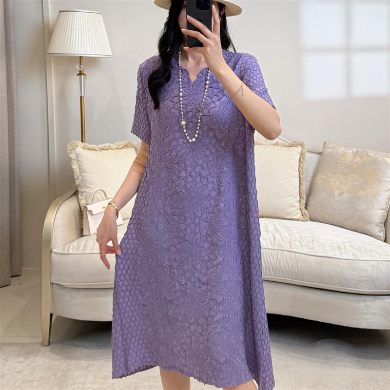 连衣裙 休闲高贵优雅妈妈礼物时尚 2025夏新款 纯色V领显瘦遮肉大码