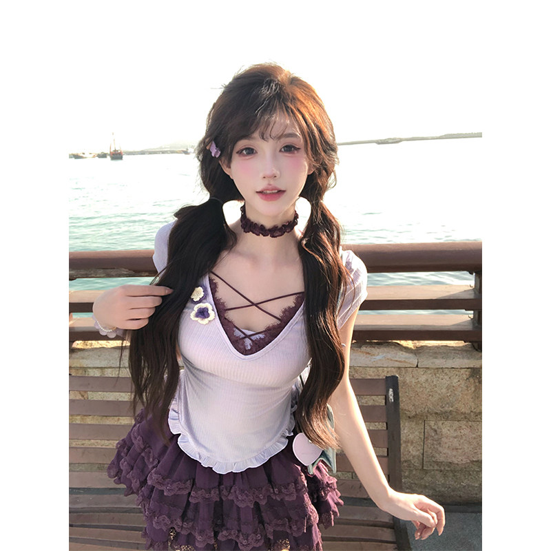 纯欲风修身 夏季 紫雾罗兰 设计小个子上衣半裙R5702Z 瑞茜