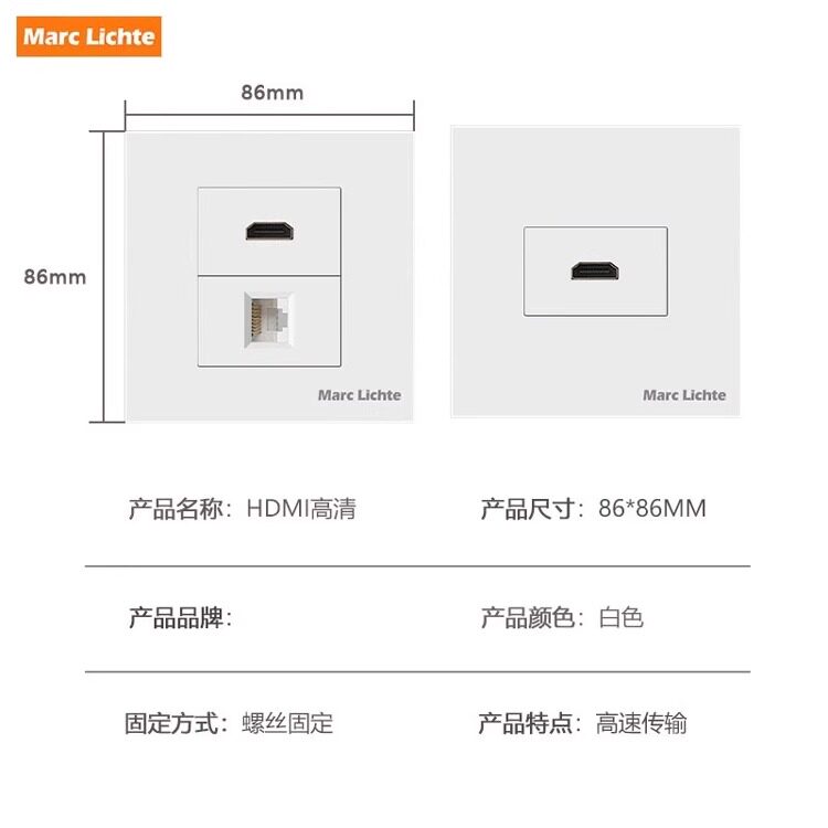 86型HDMI面板2.1高清多媒体4K电视USB数据传输五孔CAT6类网络插座