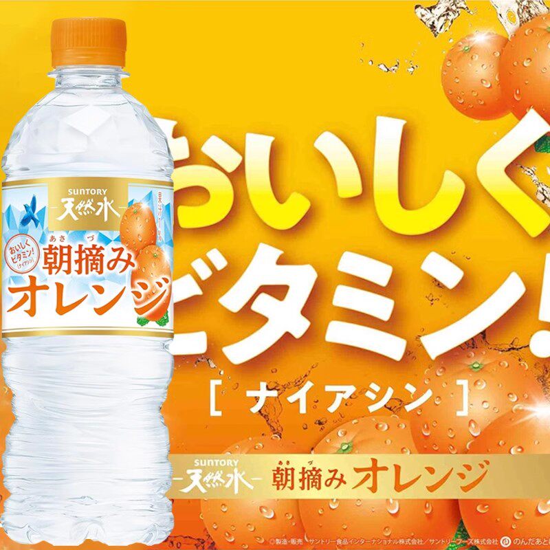 日本进口Suntory三得利朝摘橙子味橘子味透明天然水饮料540ml 4瓶