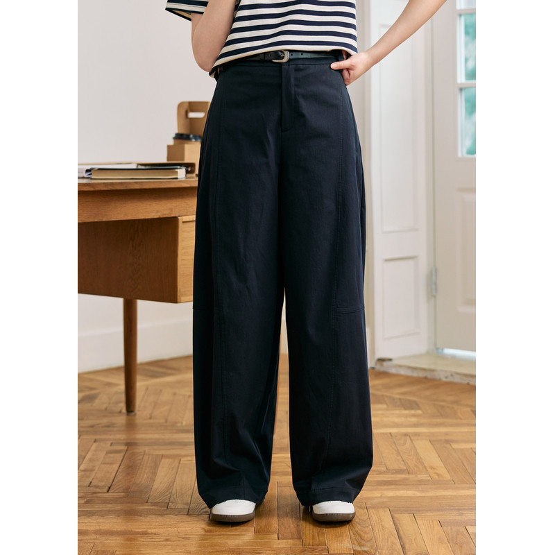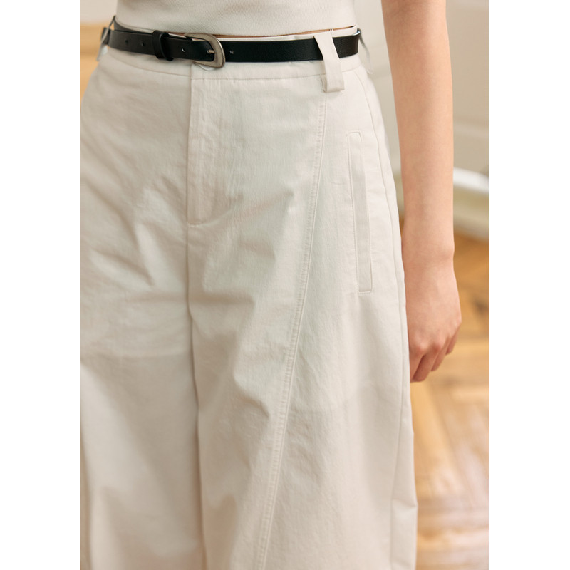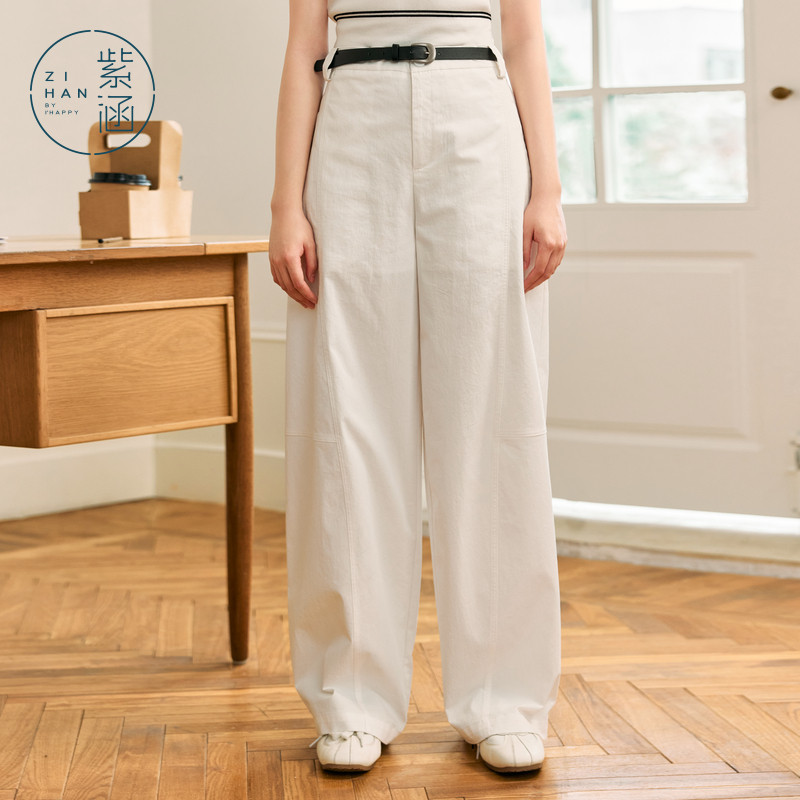 高腰宽松显瘦休闲长裤 紫涵白色弯刀阔腿裤 简约通勤时尚 新款 女夏季