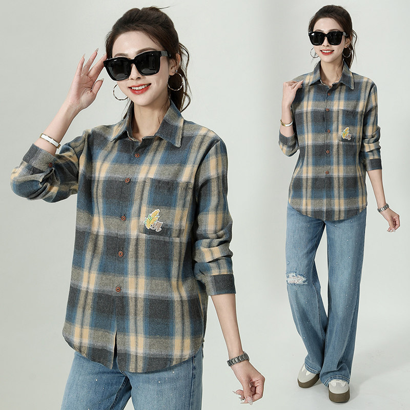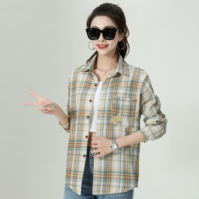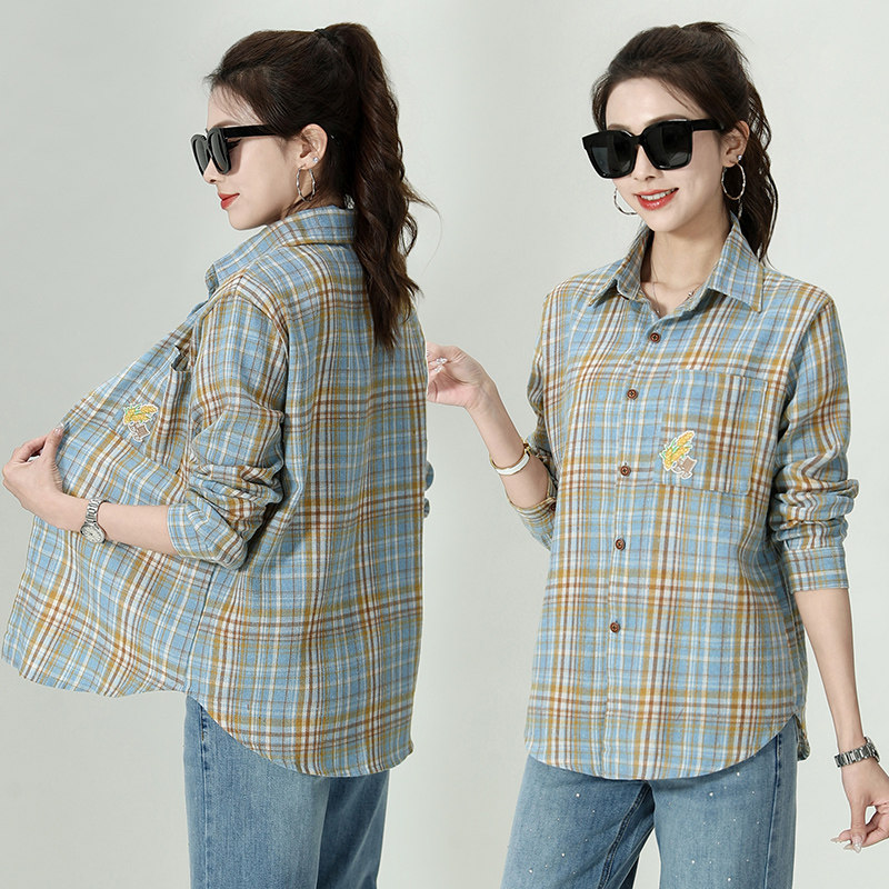 薄外套女装 格子棉衬衣女夏装 上衣 中老年春夏秋长袖 妈妈棉质衬衫