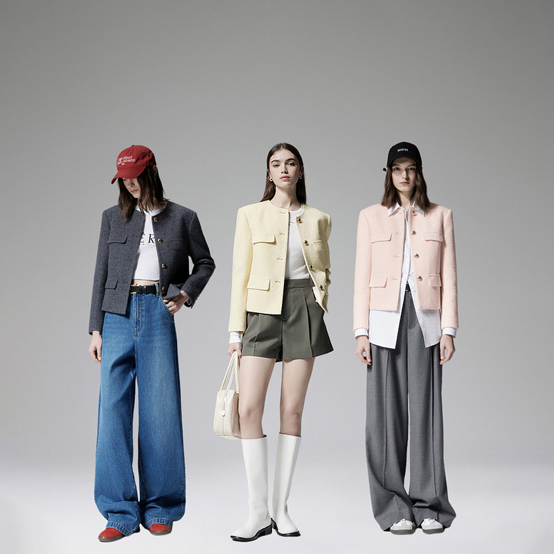 OCHIRLY欧时力小香风针织提花呢外套女显瘦正肩气质2025春新款