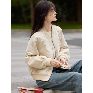 XWI欣未新中式 今年流行国风夹克上衣 提花肌理感棒球服外套女春季