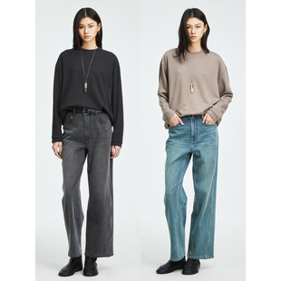 裤 NO93裤 新款 女高腰拖地宽松2025冬季 子2725 王超厚加绒直筒牛仔裤