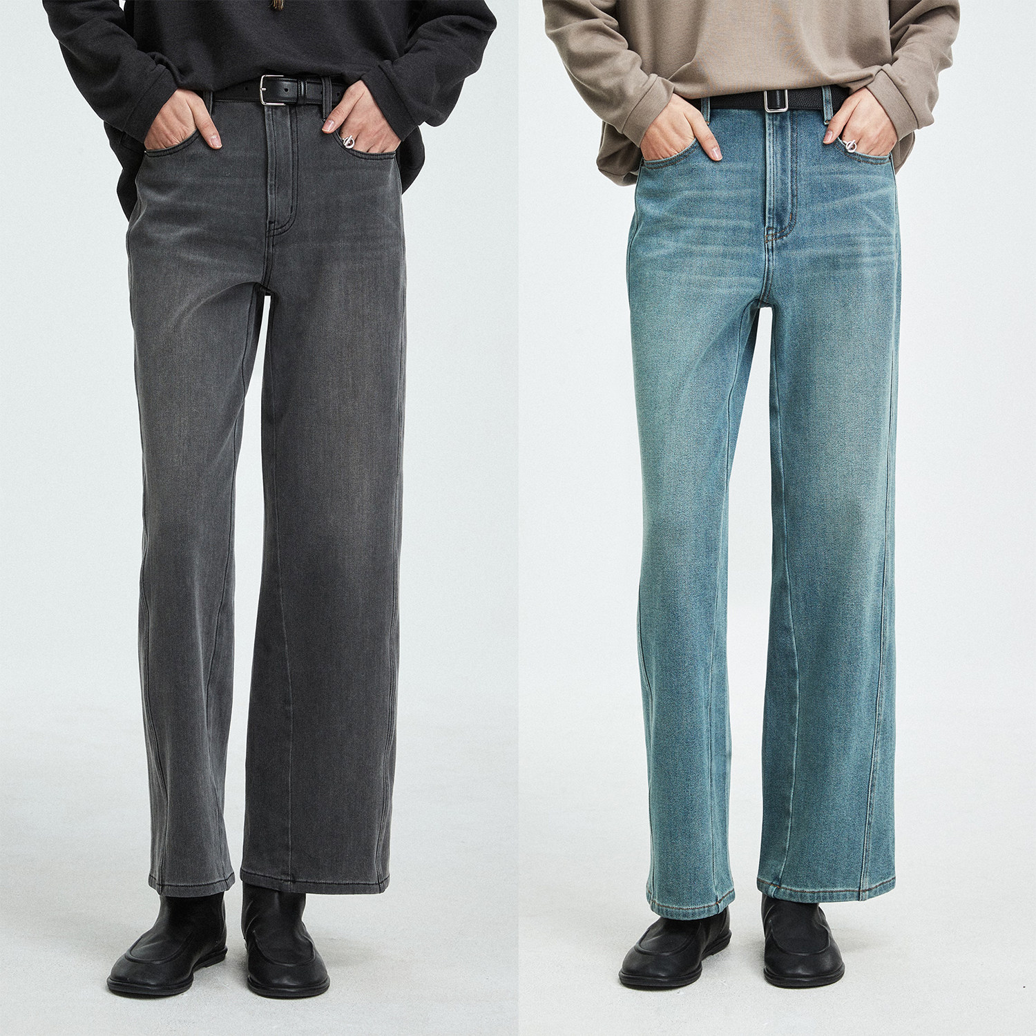 复古阔腿牛仔裤 2025秋冬新款 高街美式 男士 重磅奥粒绒加厚保暖长裤