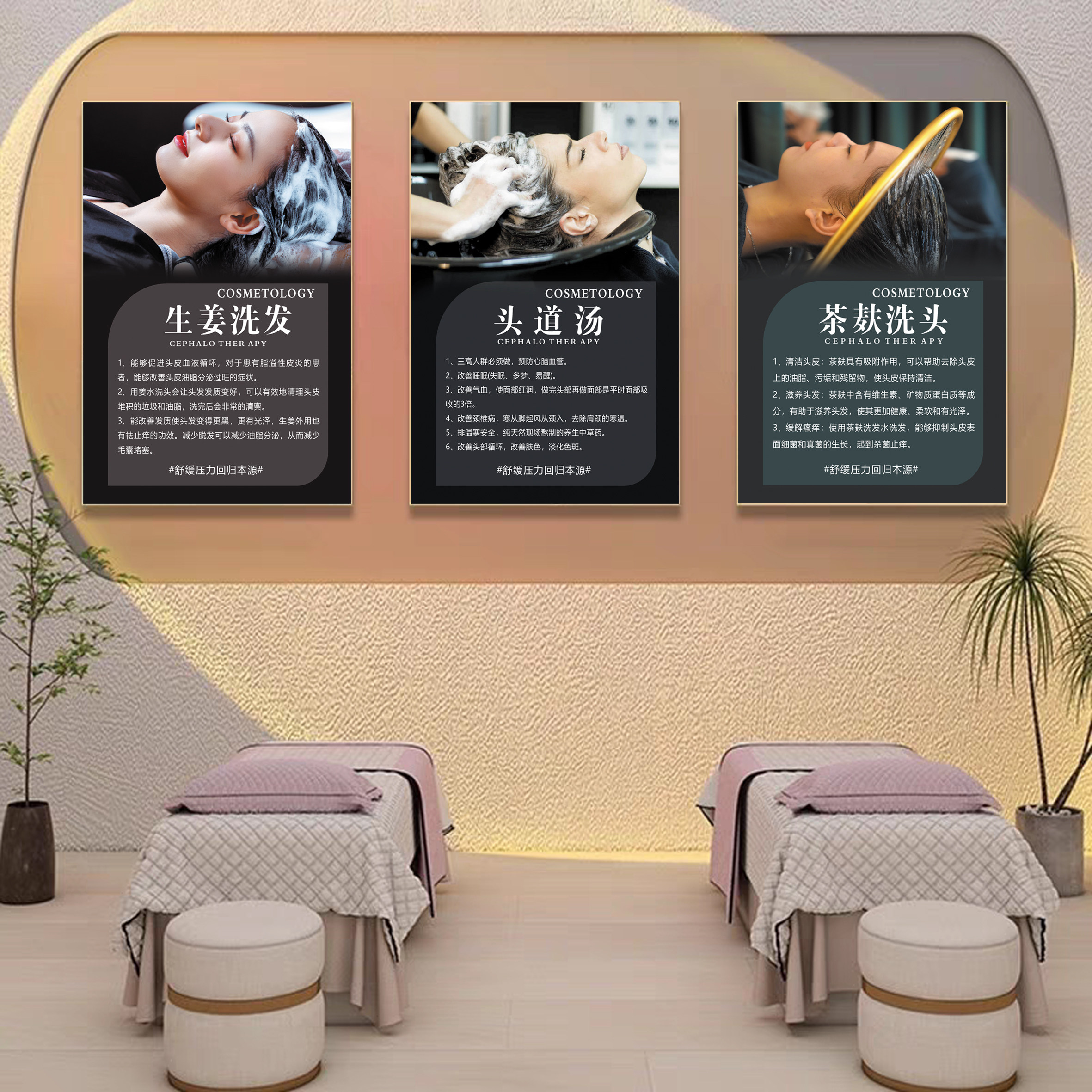 头疗图片宣传画养发馆挂画姜疗茶麸洗头广告墙装 饰画墙面KT板海报