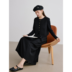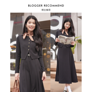 女两件套 黑色赫本风马甲短外套连衣裙套装 衣香丽影2025秋冬装 新款