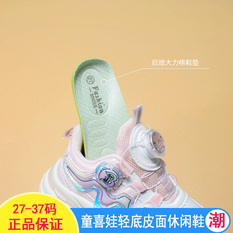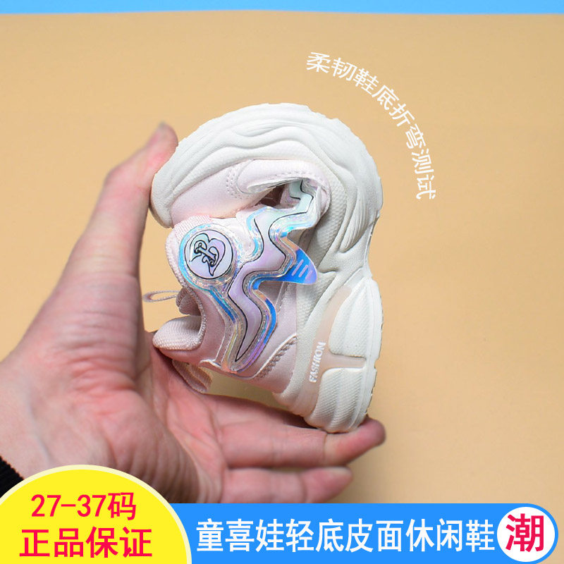 防水皮面老爹鞋 女童休闲运动鞋 轻底魔术贴潮 2024秋冬款 童喜娃童鞋