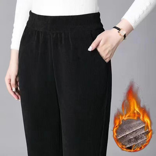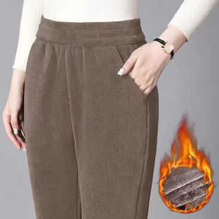 欧棉绒休闲裤 宽松小脚高腰妈妈保暖裤 加绒加厚 秋冬女士哈伦裤 特价