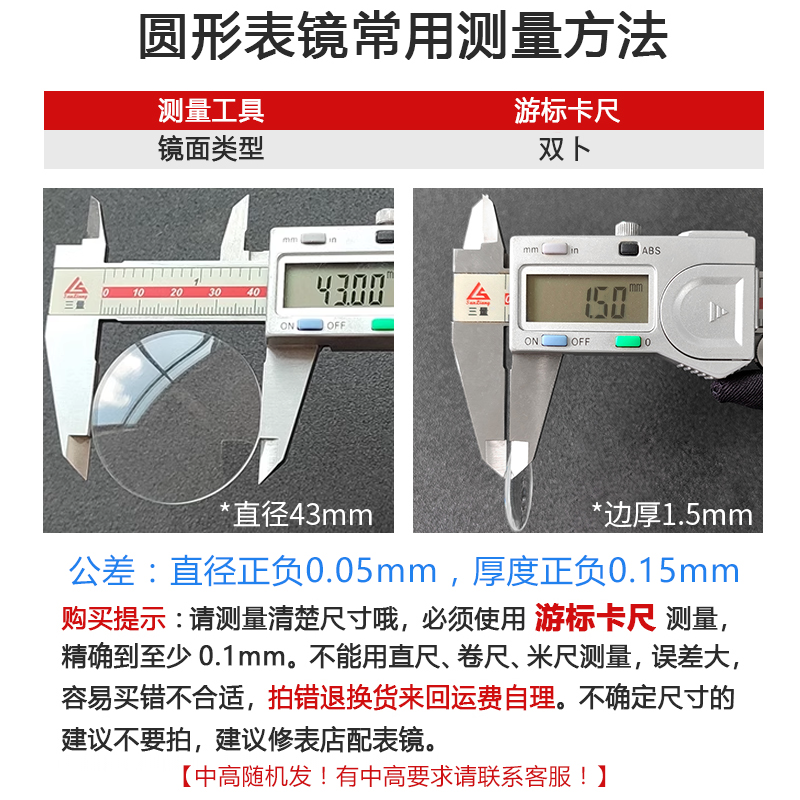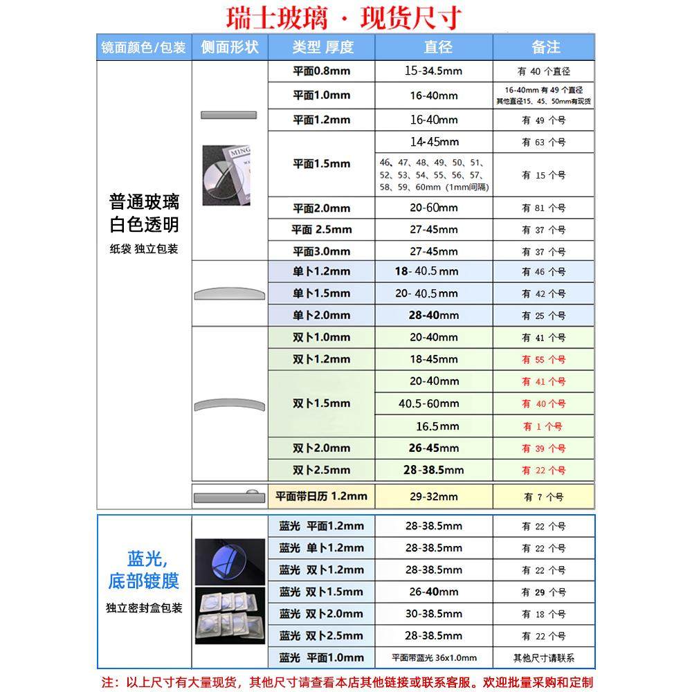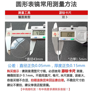 瑞士玻璃双卜1.5厚40 49.5mm普通拱形球面镜面镜片表蒙子修表配件