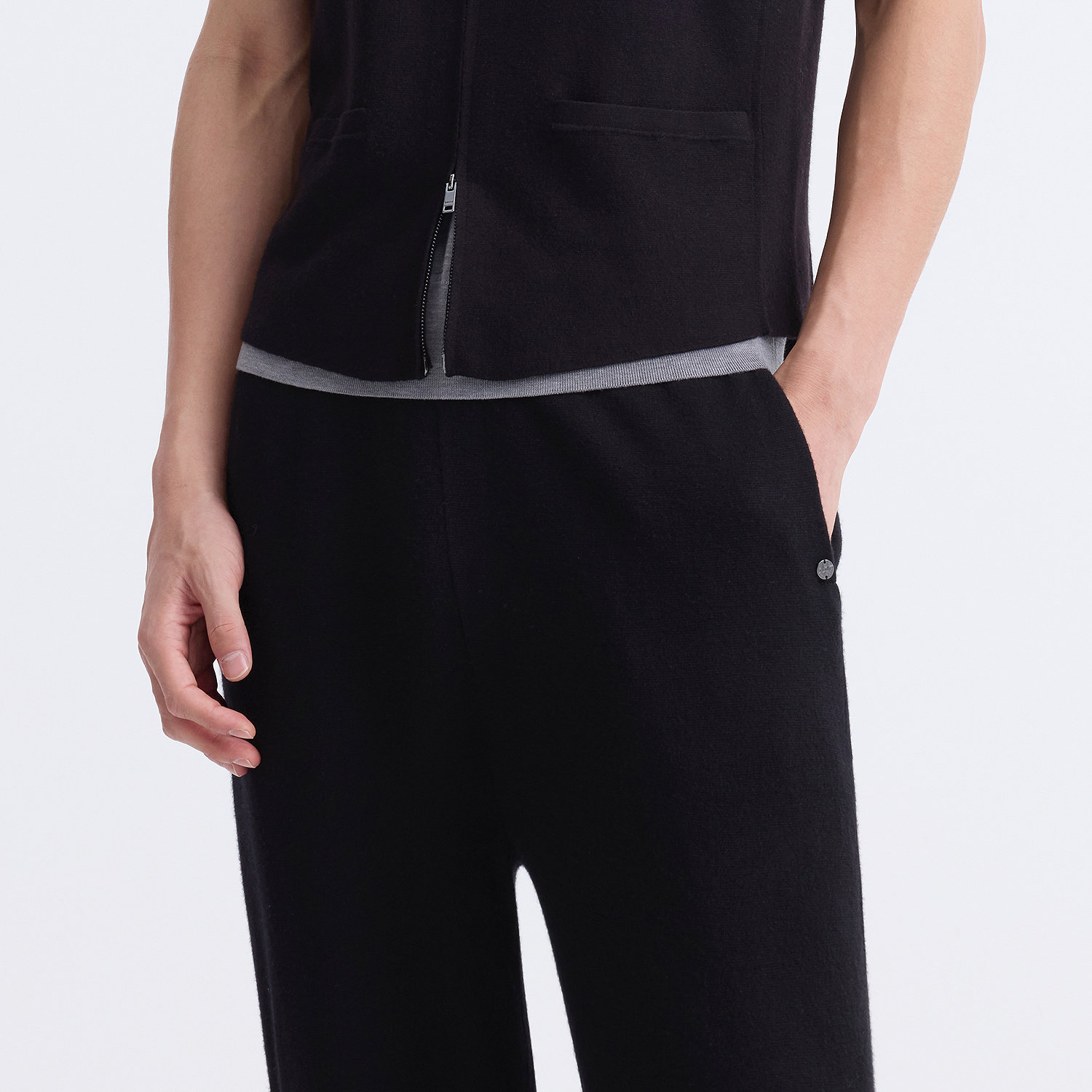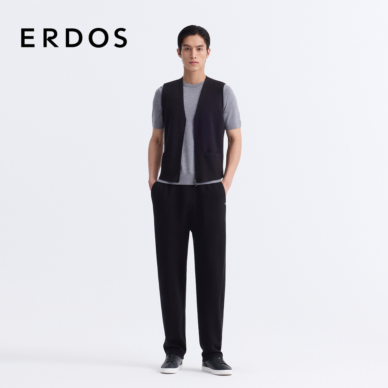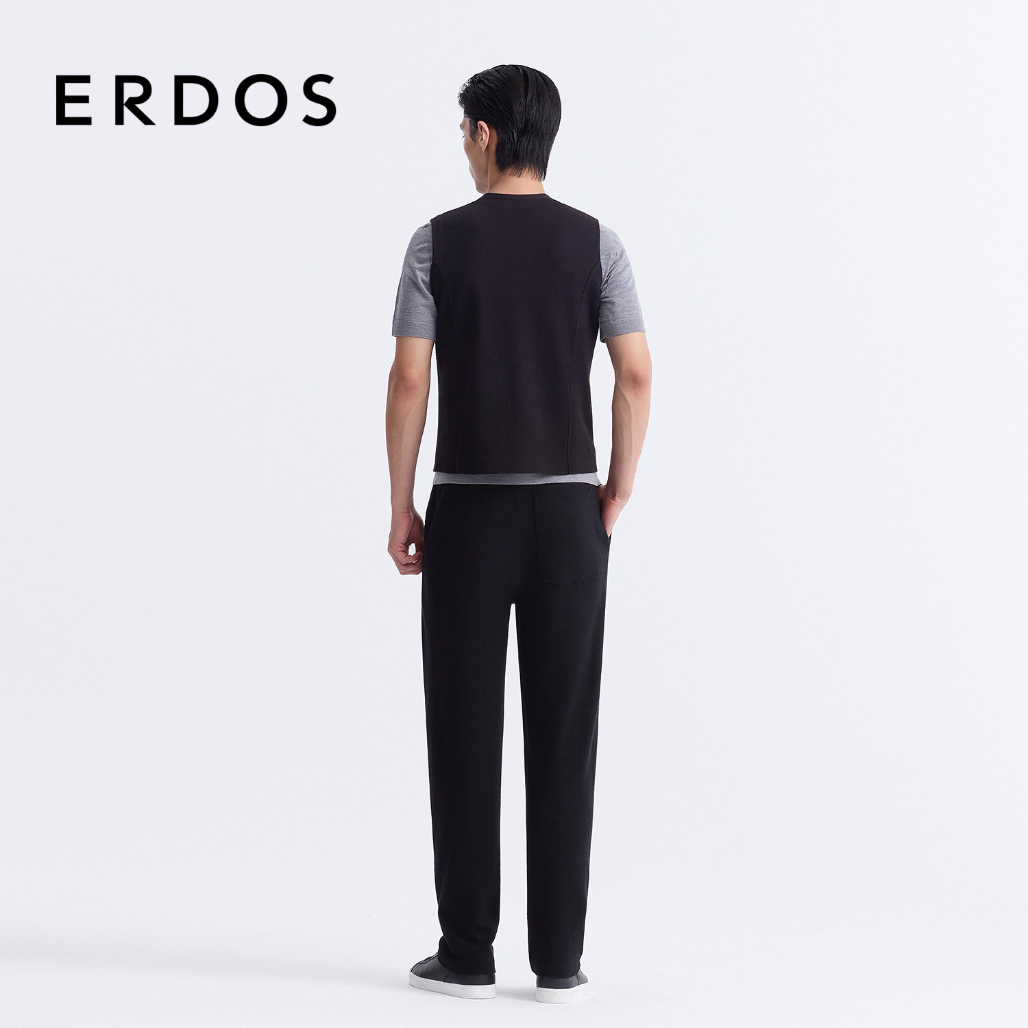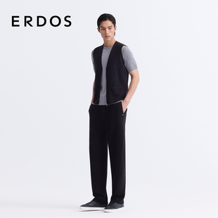 黑色精纺四平空转宽松直筒裤 毛绒混纺长裤 男装 ERDOS