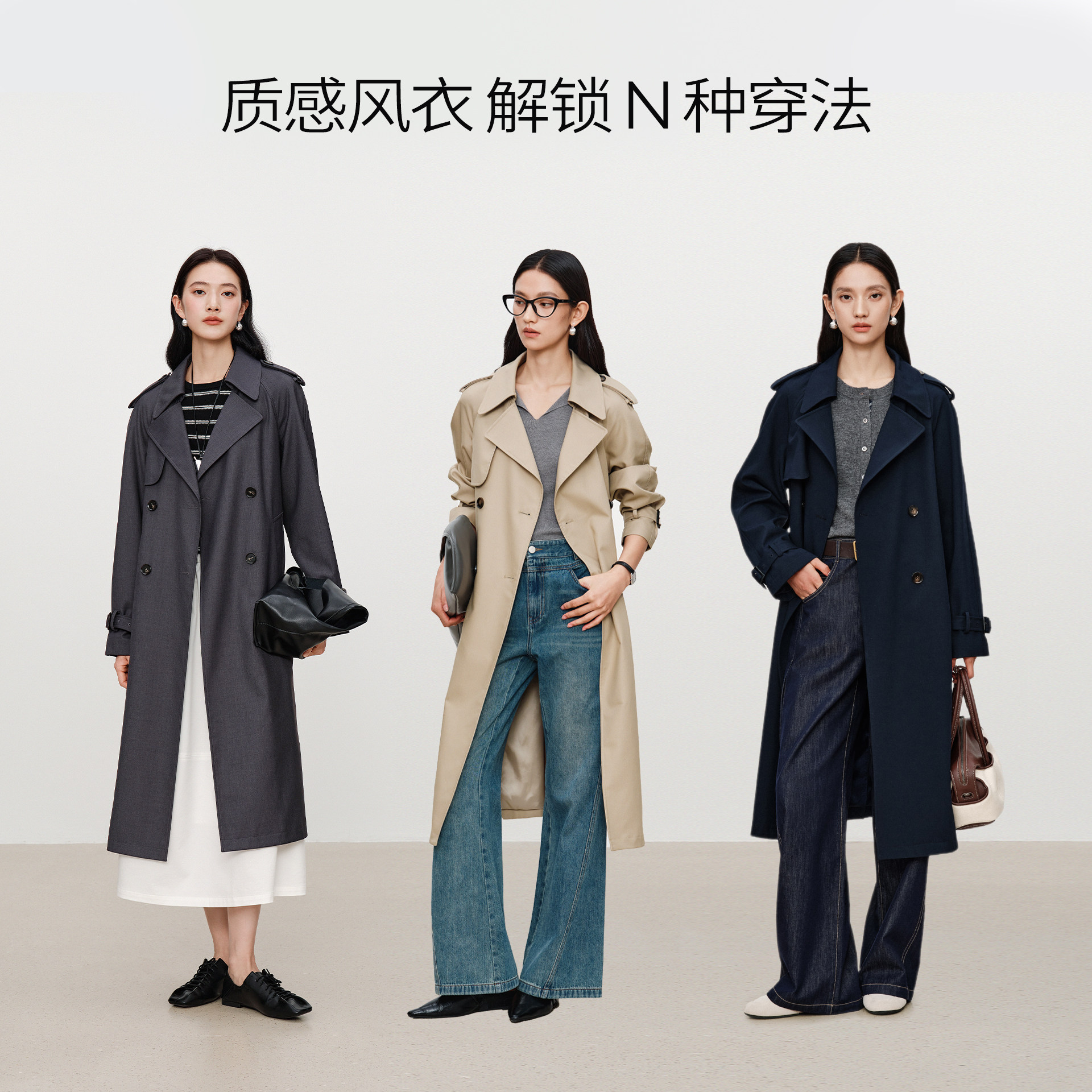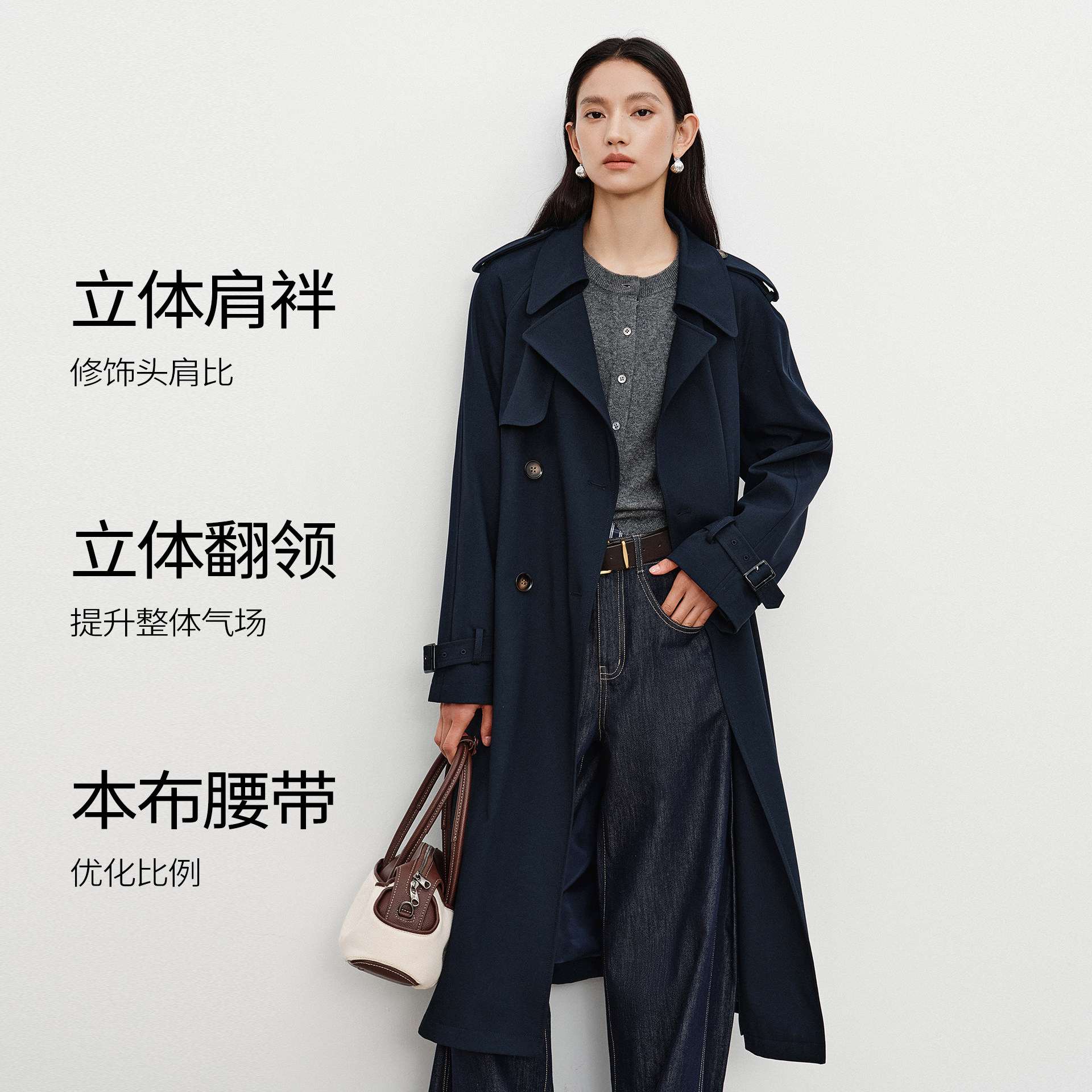 藏青色英伦风外套 新款 衣香丽影免烫抗皱风衣女中长款 2026年春装