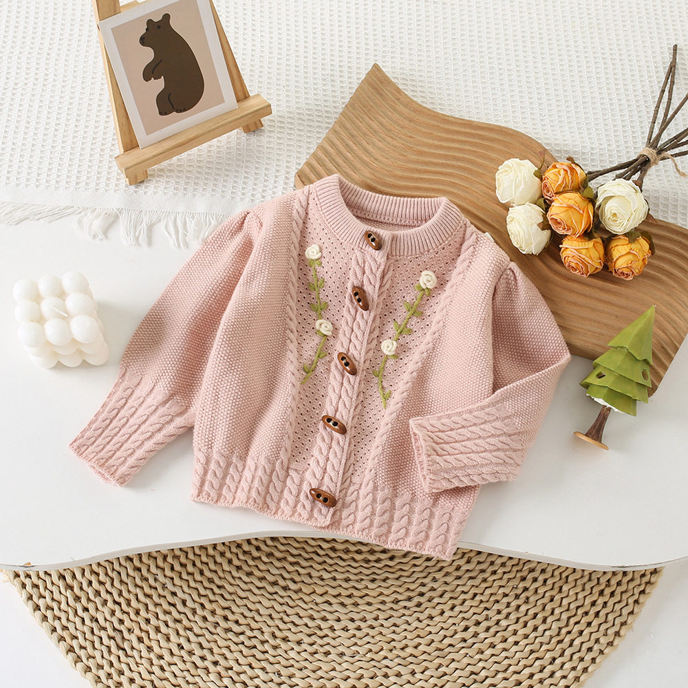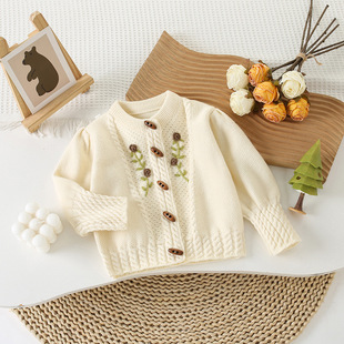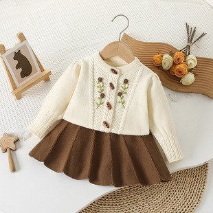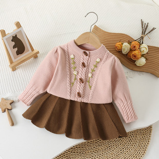 女宝宝水草绣花针织开衫 毛衣套裙秋冬款 洋气毛衣裙 撤柜童装 特价