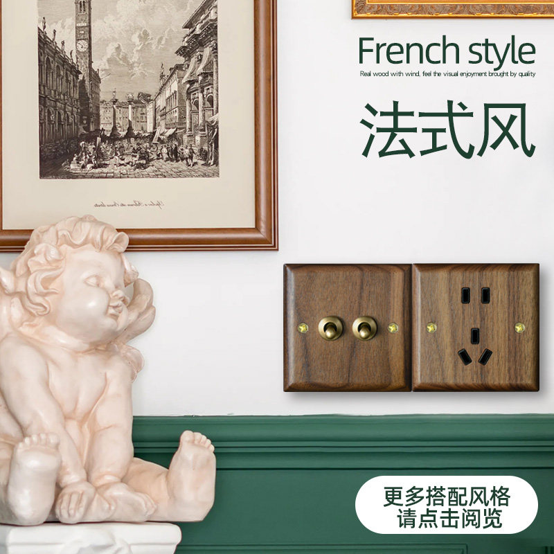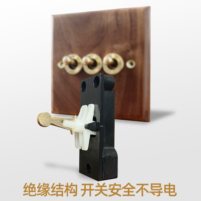 美式 黑胡桃木开关面板插座黄铜拨杆实木复古开关插座86型仿古开关