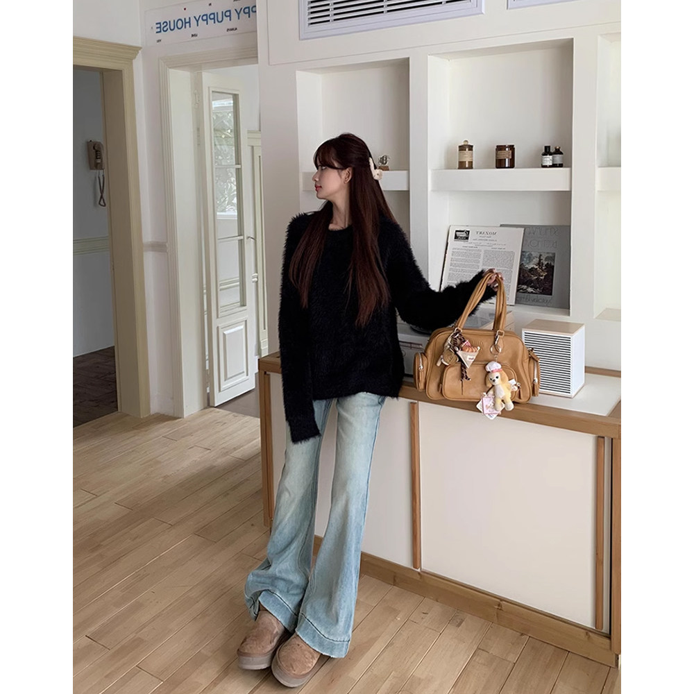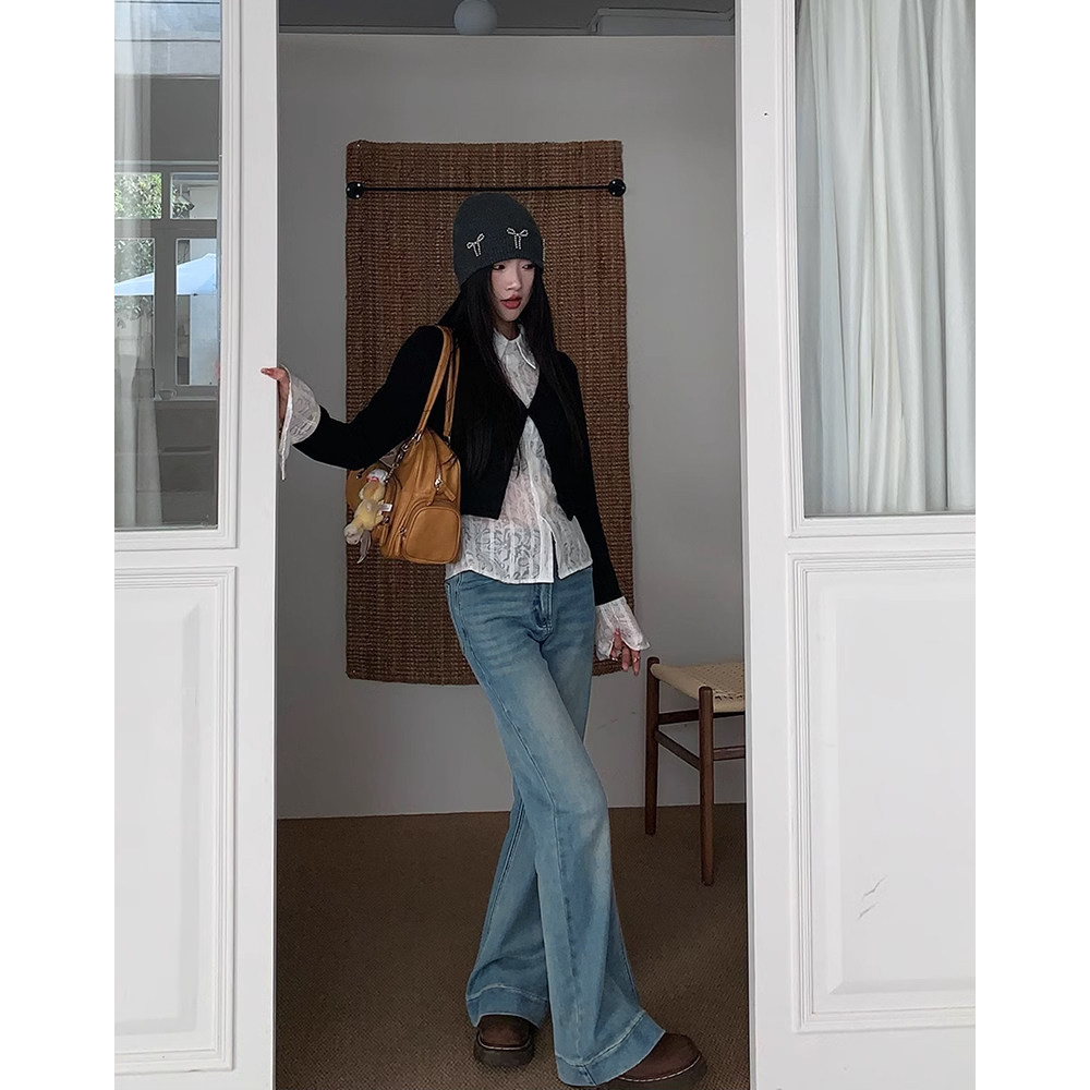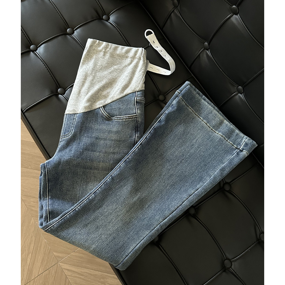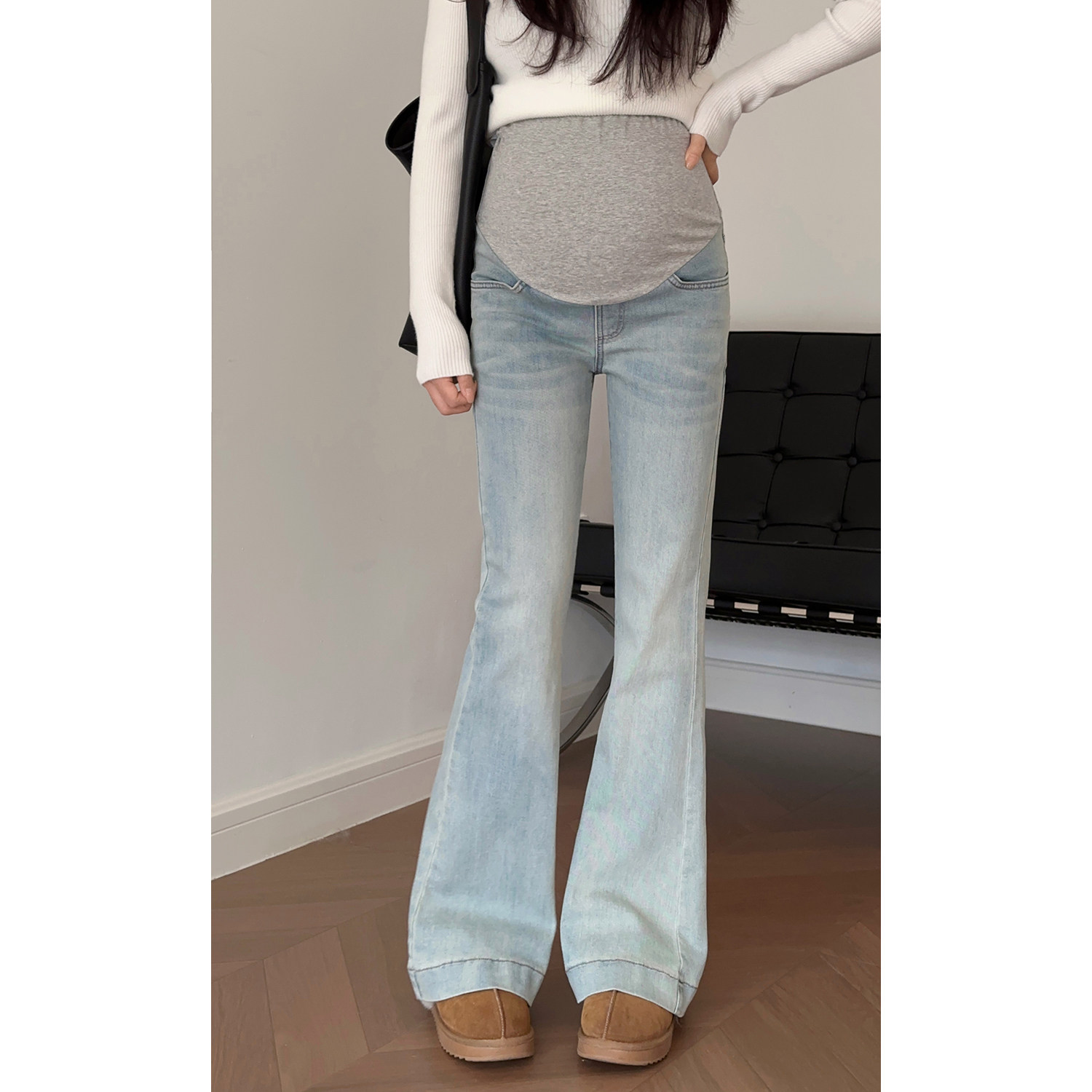 外穿不勒肚子托腹裤 加绒加厚2025新款 子 秋冬季 浅蓝孕妇牛仔喇叭裤