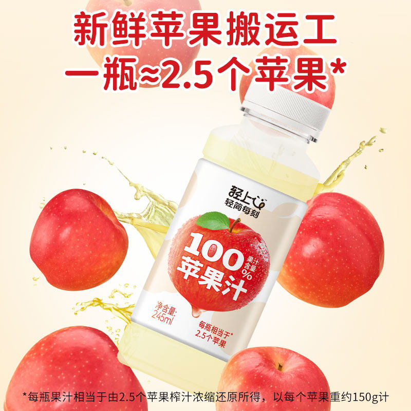 轻上苹果汁饮料甄选陕西红富士苹果245ml 10瓶大餐解腻干净配方