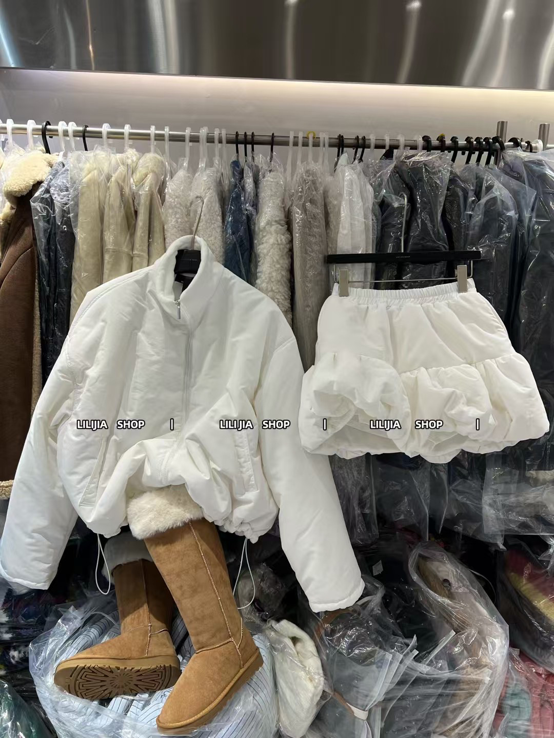 宽松立领短款 2025冬韩版 羽绒棉服夹克外套女高腰半裙套装 五折