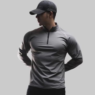 迪卡侬速干衣半拉链T恤跑步加绒男秋冬速干厚运动长袖 T恤上衣SAL3
