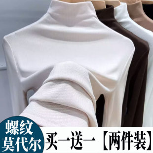 内搭黑色洋气中领上衣服 修身 半高领螺纹莫代尔打底衫 女春秋冬长袖