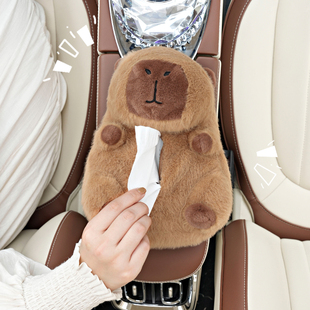 卡皮巴拉水豚车载纸巾盒可爱毛绒汽车扶手箱抽纸盒多功能挂式 抽纸