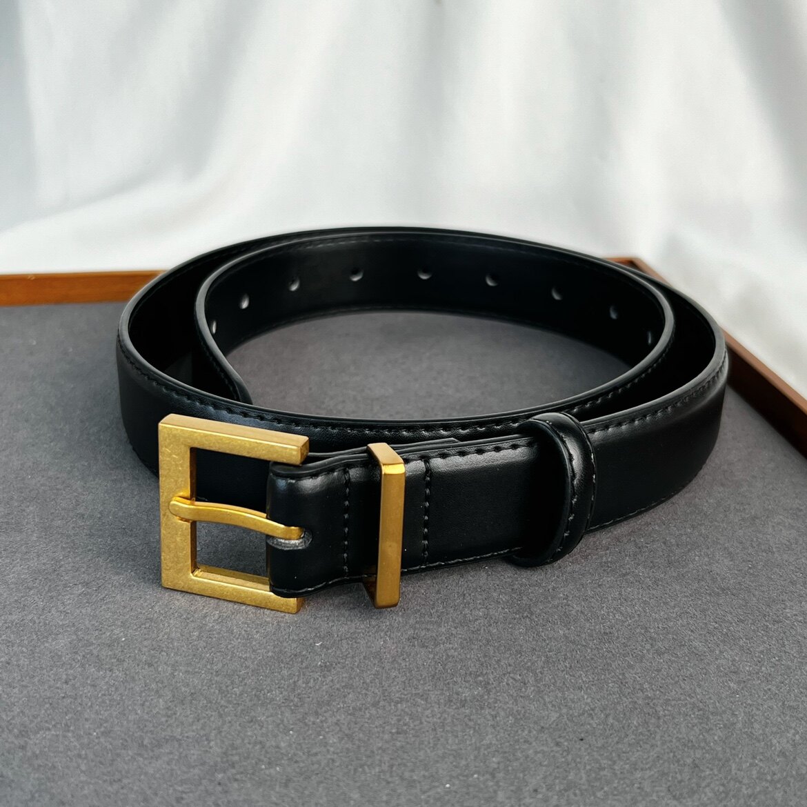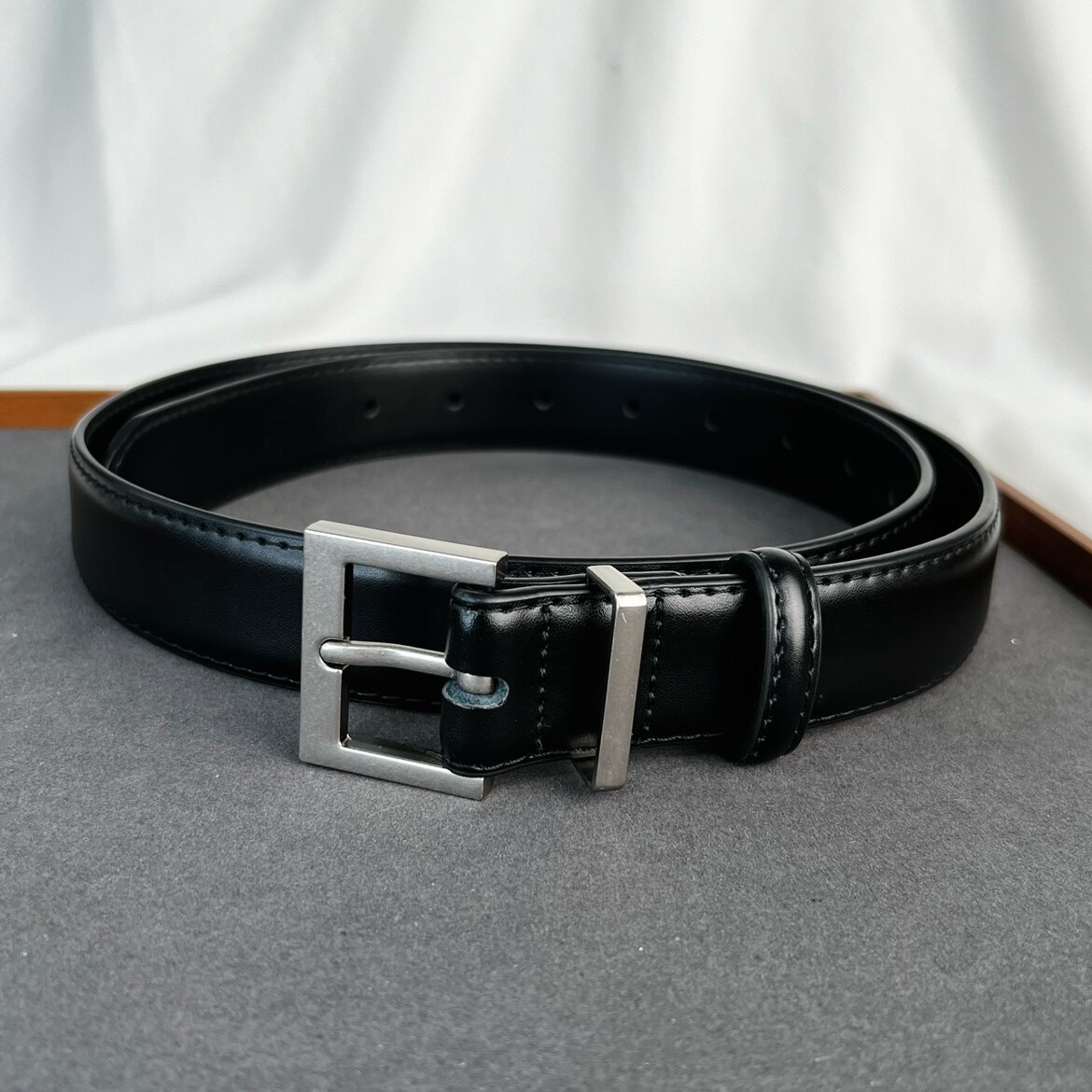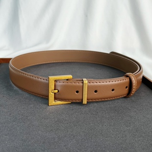 二层牛皮带 腰带金银针扣row风休闲百搭皮带配牛仔裤 法式 简约风格