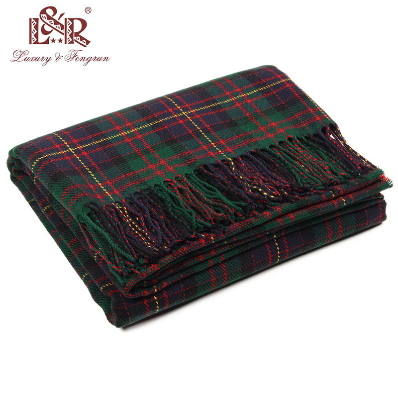 欧美风秋冬厚款 196CM大披肩盖毯毯子居家 保暖百搭格子大尺寸122