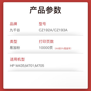 适用惠普HP M435nw墨盒M701a粉盒 dtn CZ192A硒鼓 打印机墨粉盒 M706dn CZ193A硒鼓 M706n 九千谷 M701n