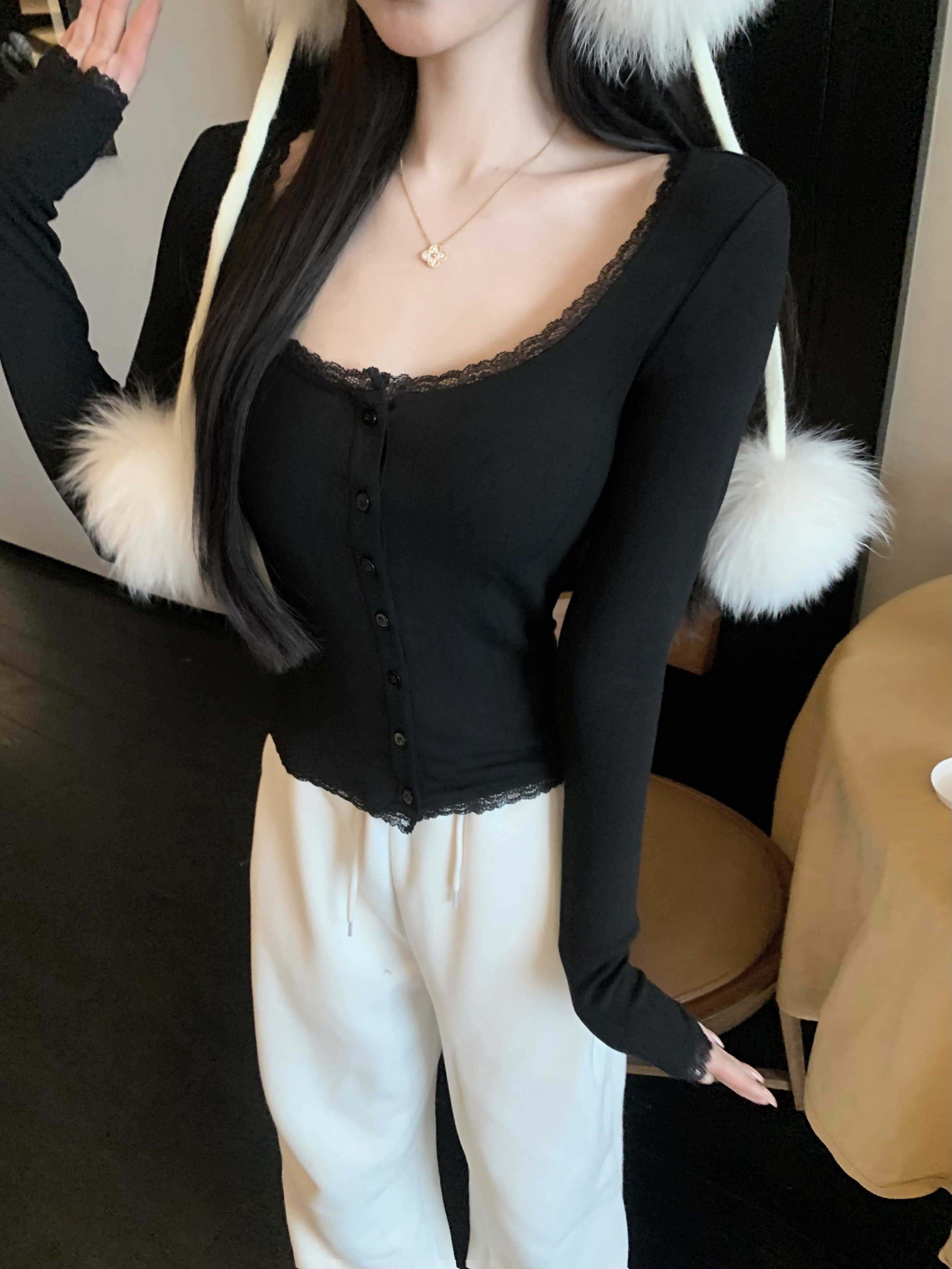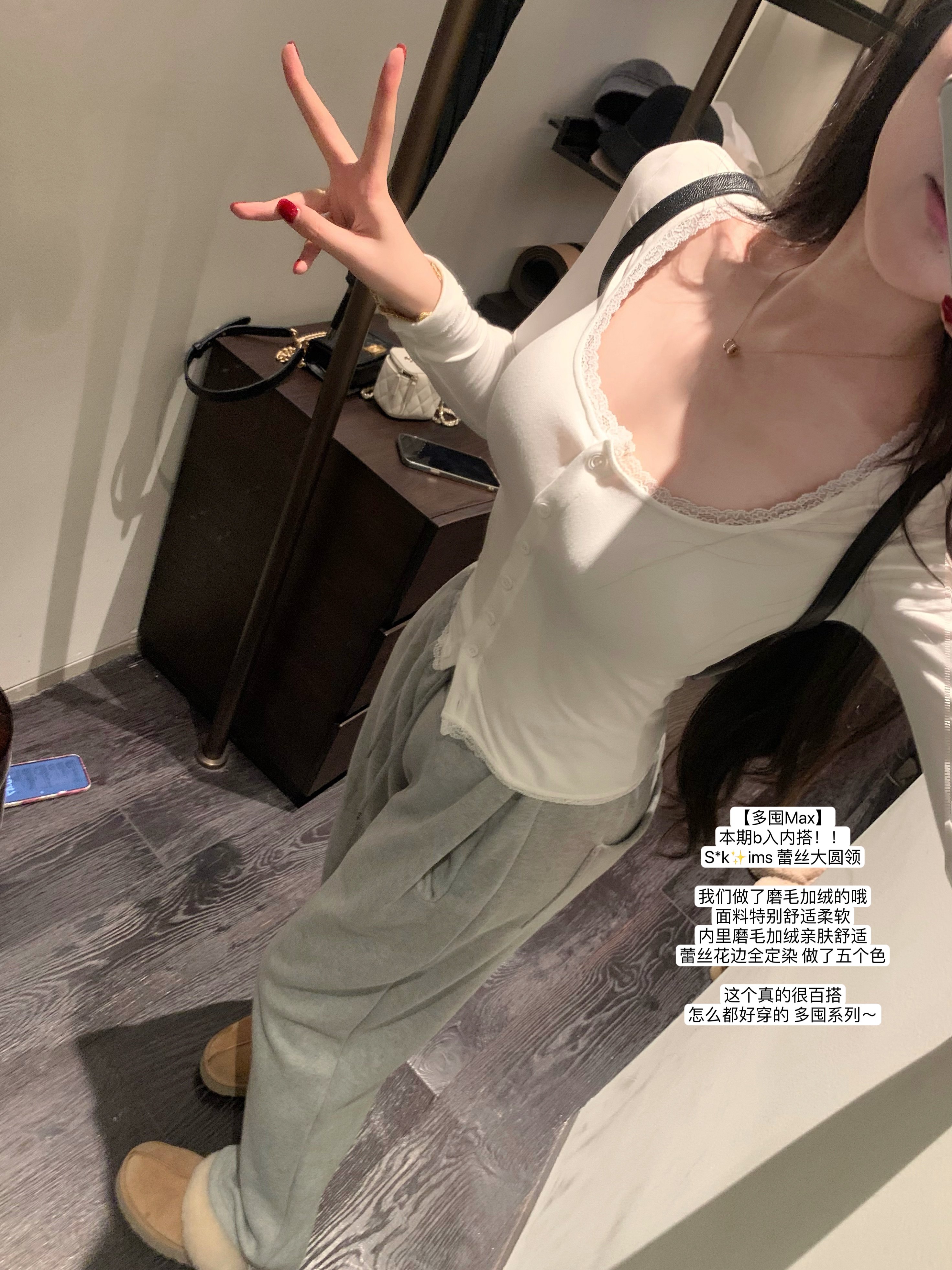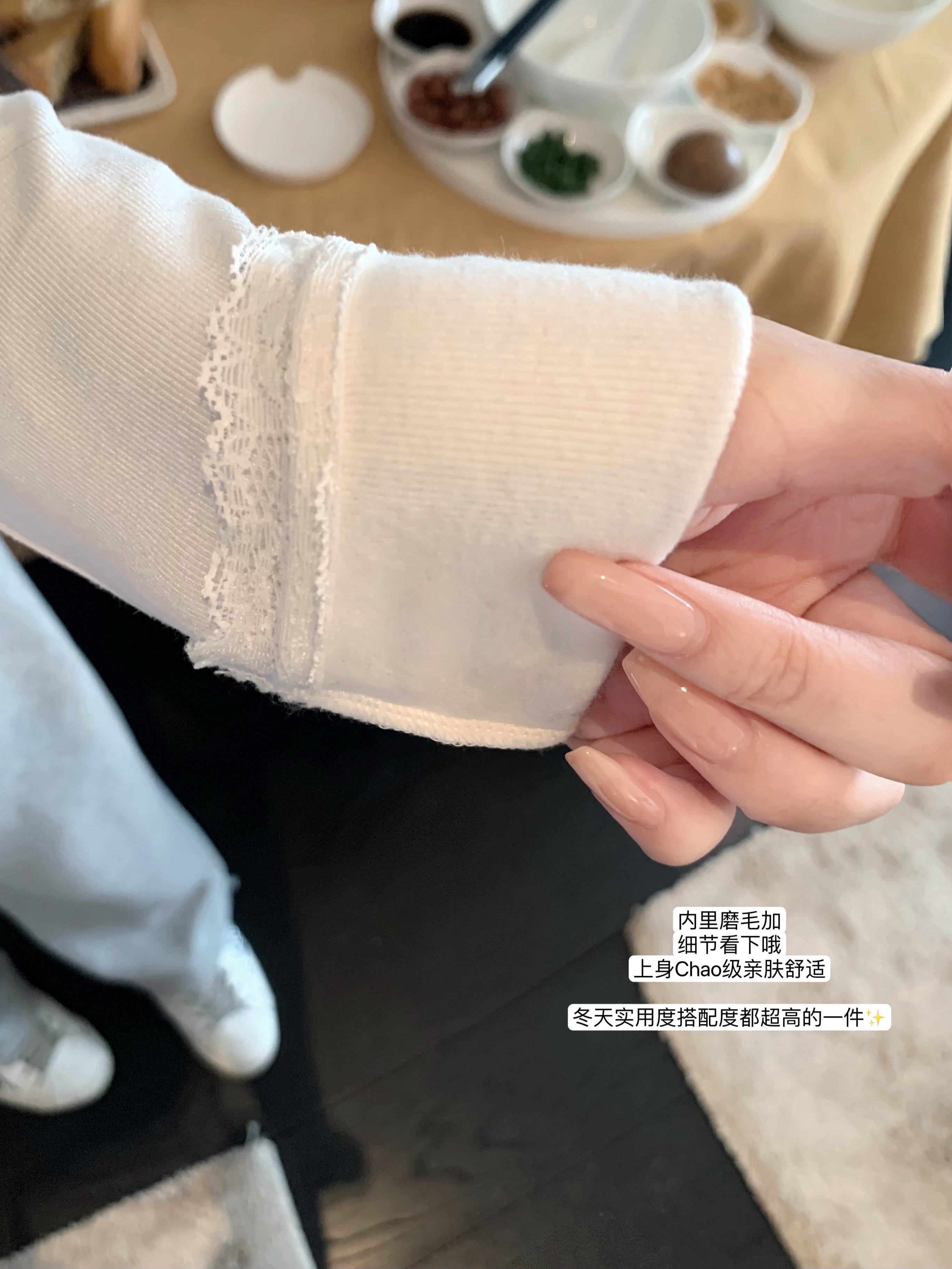 磨毛加绒定染蕾丝花边Skims长袖 POET 必入内搭 多囤max WONG
