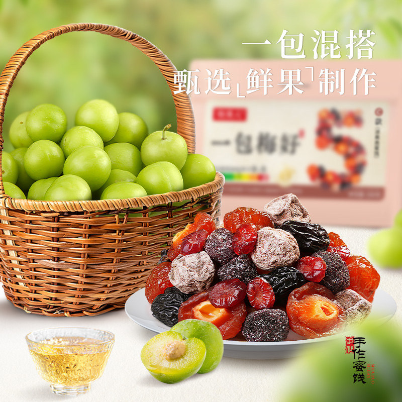 蜜饯果脯果干西梅话梅乌梅条 牧果人一包梅好混合装 香菇宠粉节