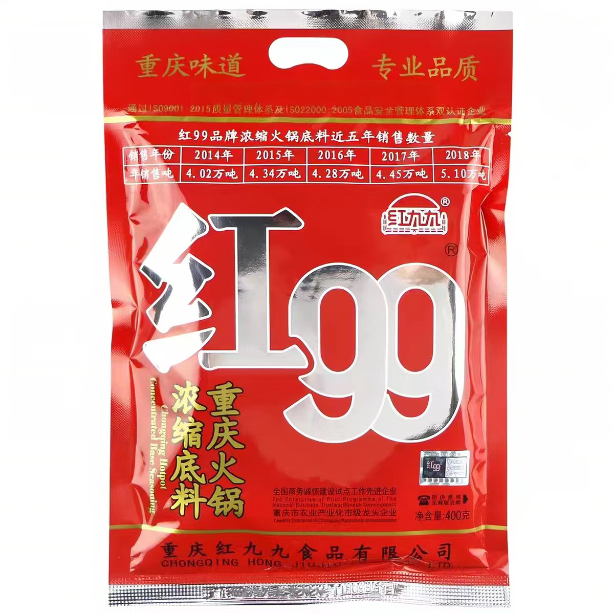 红九九火锅底料400g红99麻辣四川正宗重庆久久牛油家用调料商用