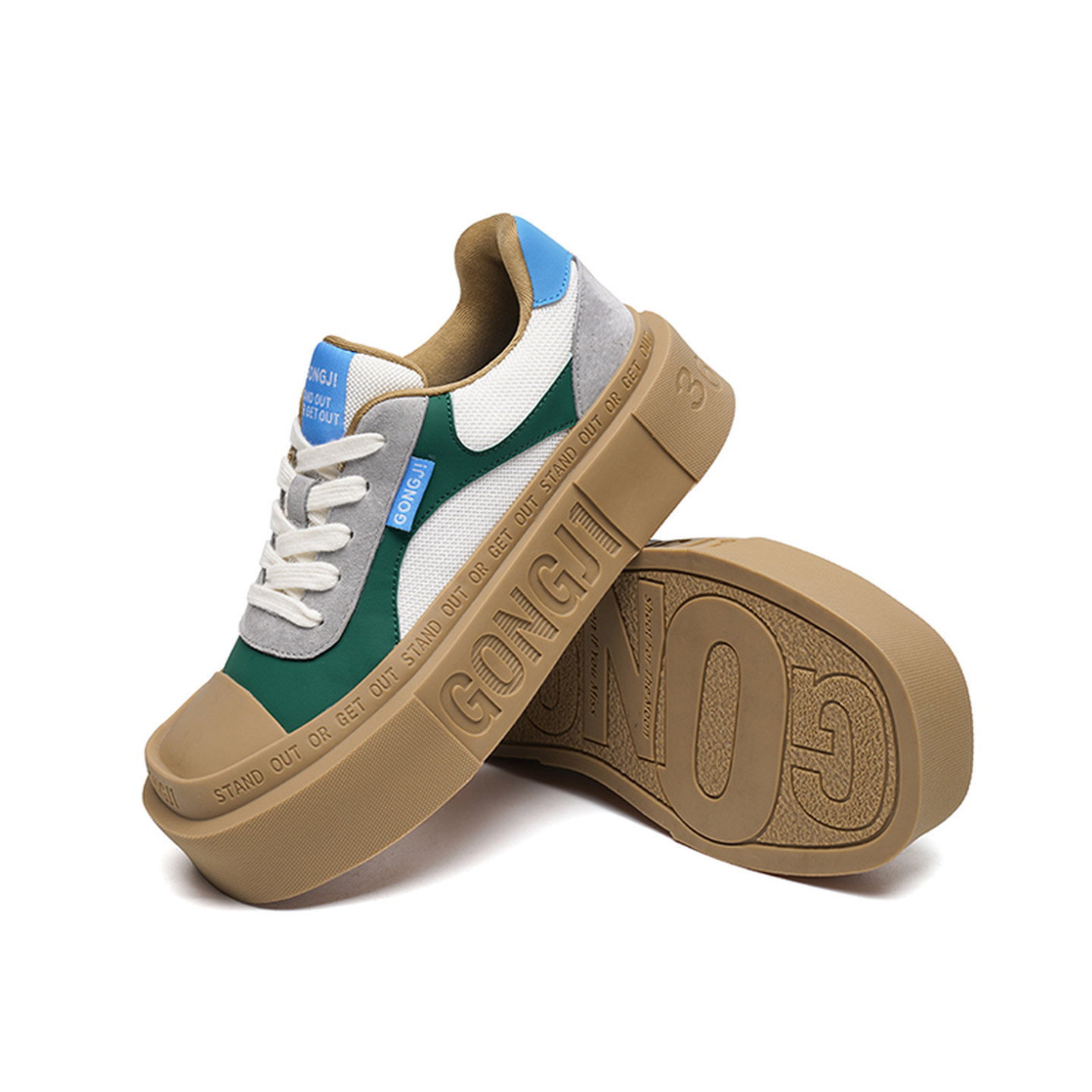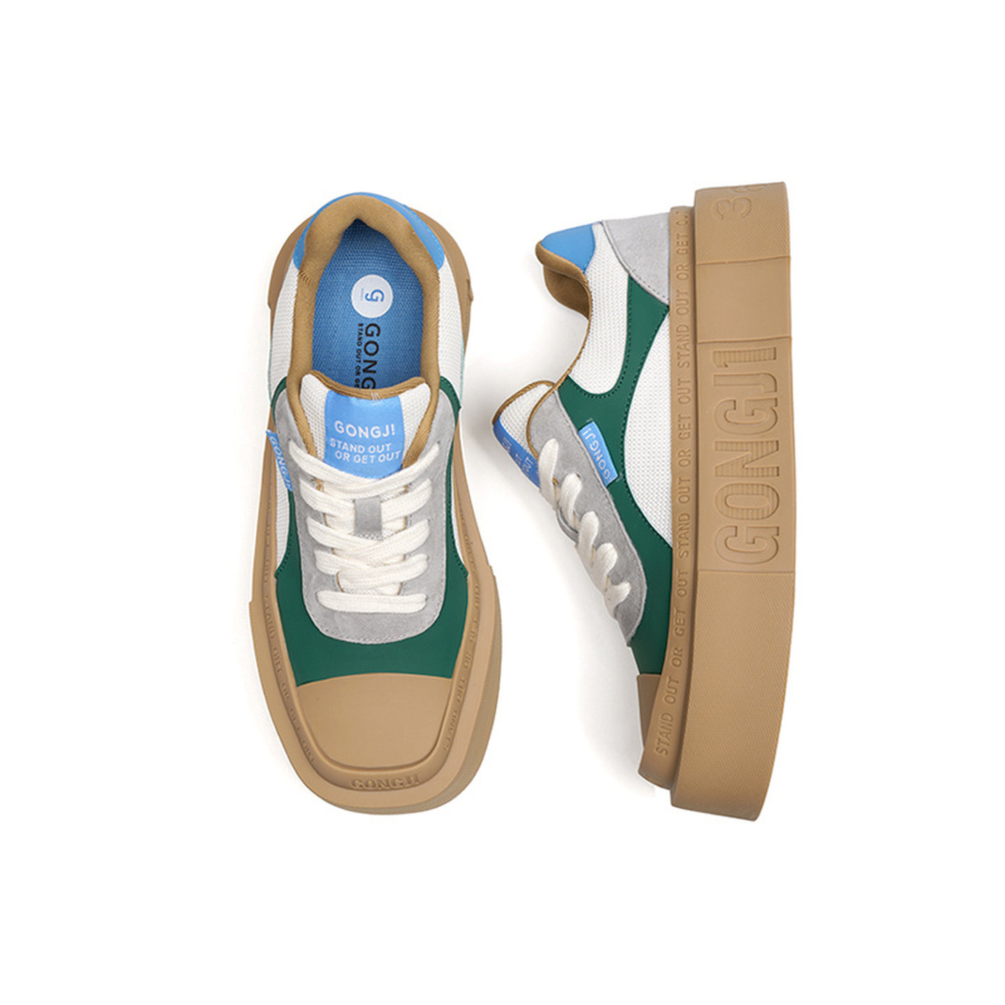 女国潮原创休闲板鞋 GONGJI复古方头厚底单鞋 设计感 沈月同款