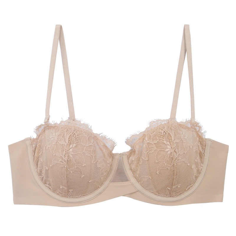 超薄蕾丝兔耳朵软钢圈1 2半杯内衣女聚拢无肩带防滑隐形文胸