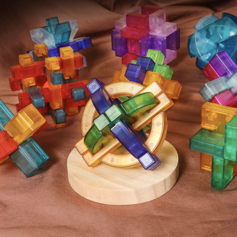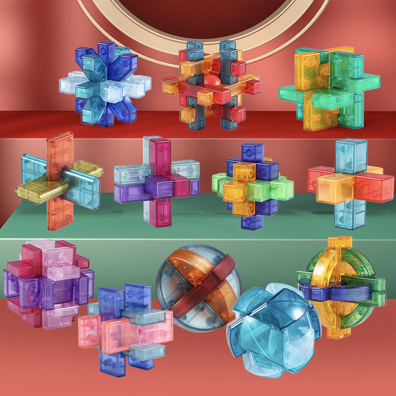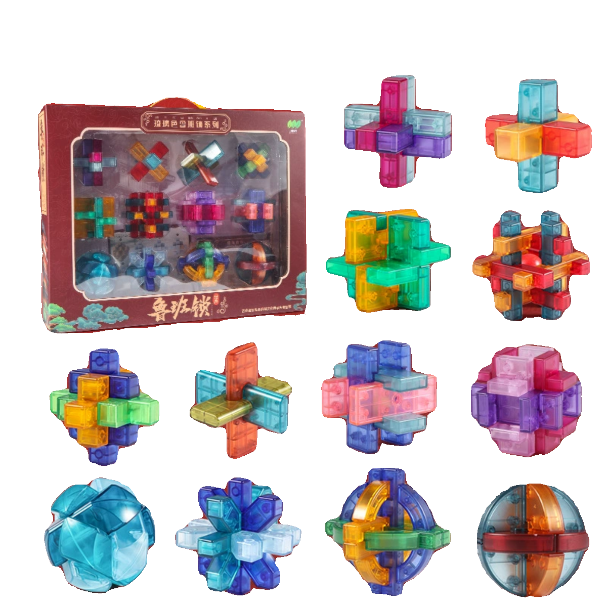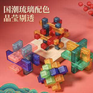 国潮系孔明锁鲁班锁琉璃色全套智力解环小学生成人儿童解锁益智