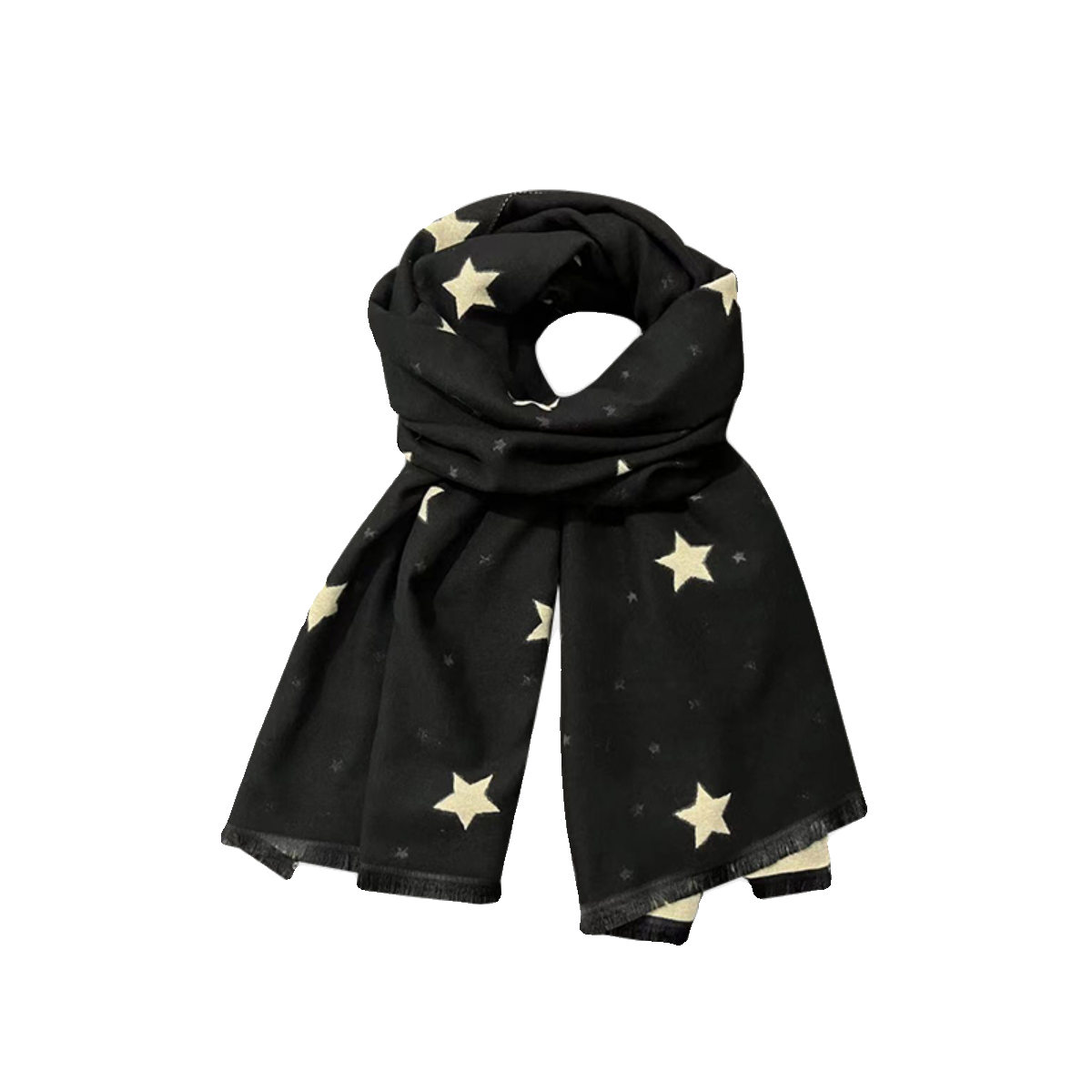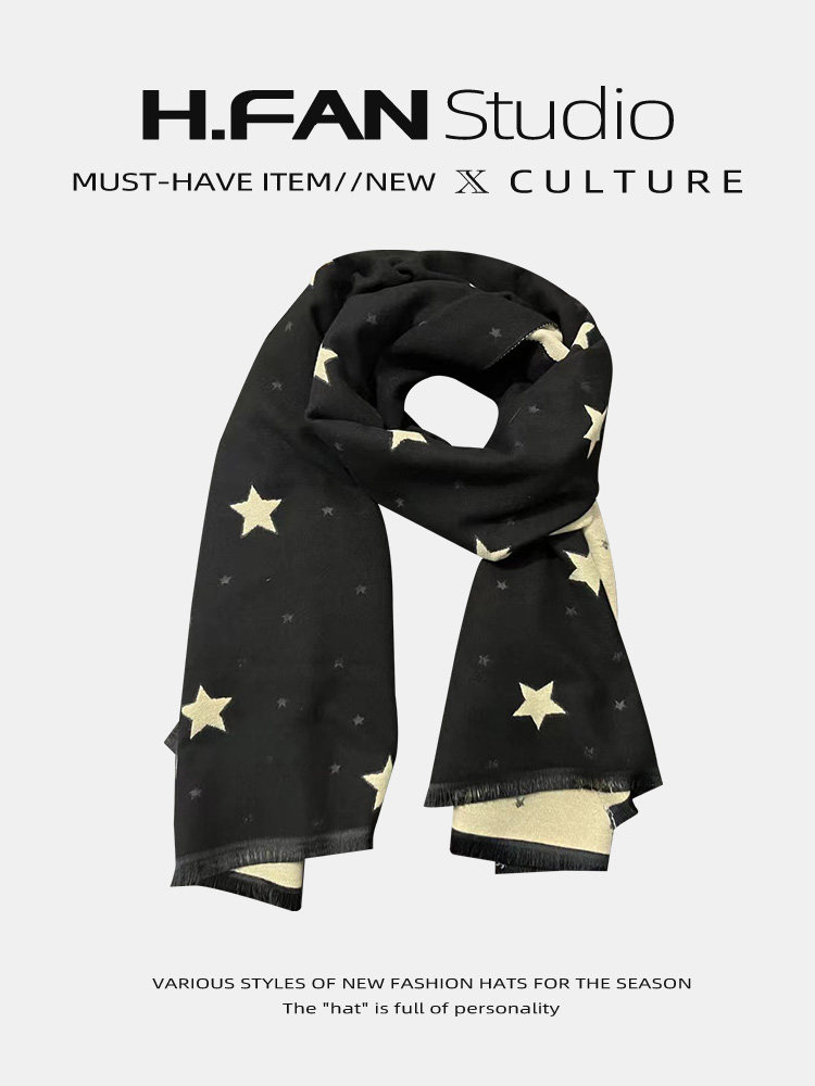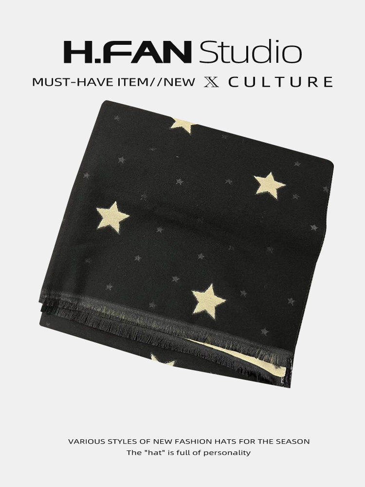 日系y2k星星仿羊绒保暖百搭围巾女冬季 双面披肩围脖 甜美学生长款