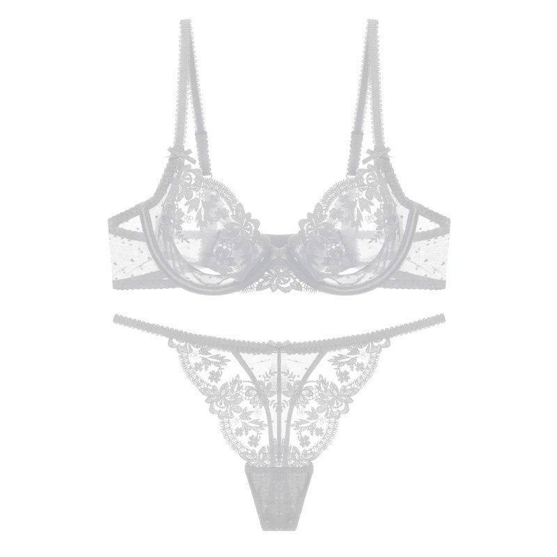聚拢文胸女防下垂丁字裤 法式 细带性感蕾丝薄款 新款 胸罩 内衣套装