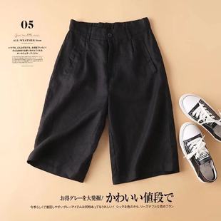 直筒7分裤 外贸原单品牌女装 短裤 女高腰西装 夏 余单清仓亚麻五分裤