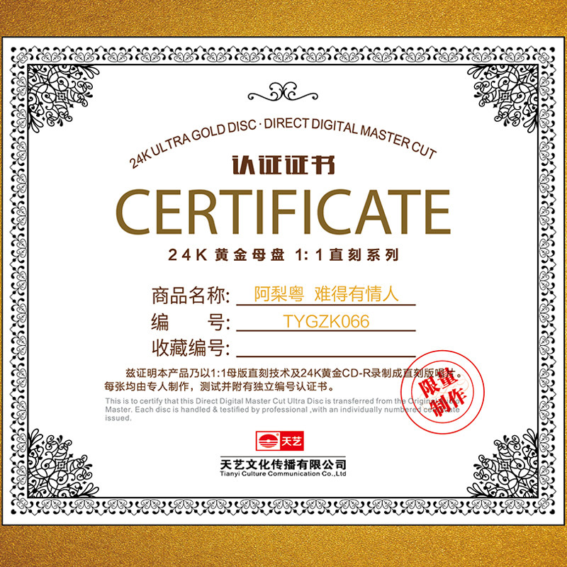 天艺唱片阿梨粤 黄金母盘直刻高品质HIFI发烧音乐 难得有情人