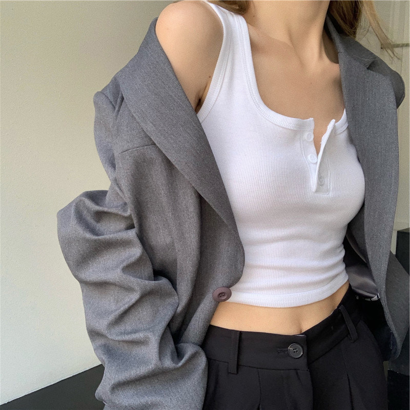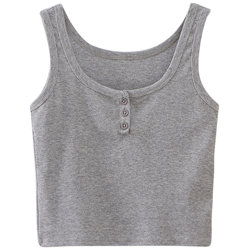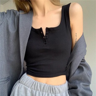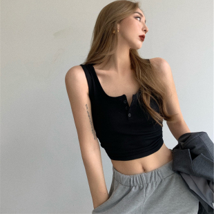 T恤短款 背心女2026夏新款 修身 纯色纽扣吊带无袖 紧身设计感基础款