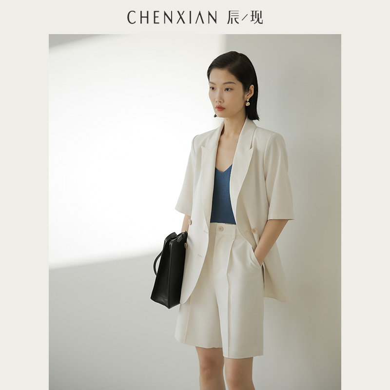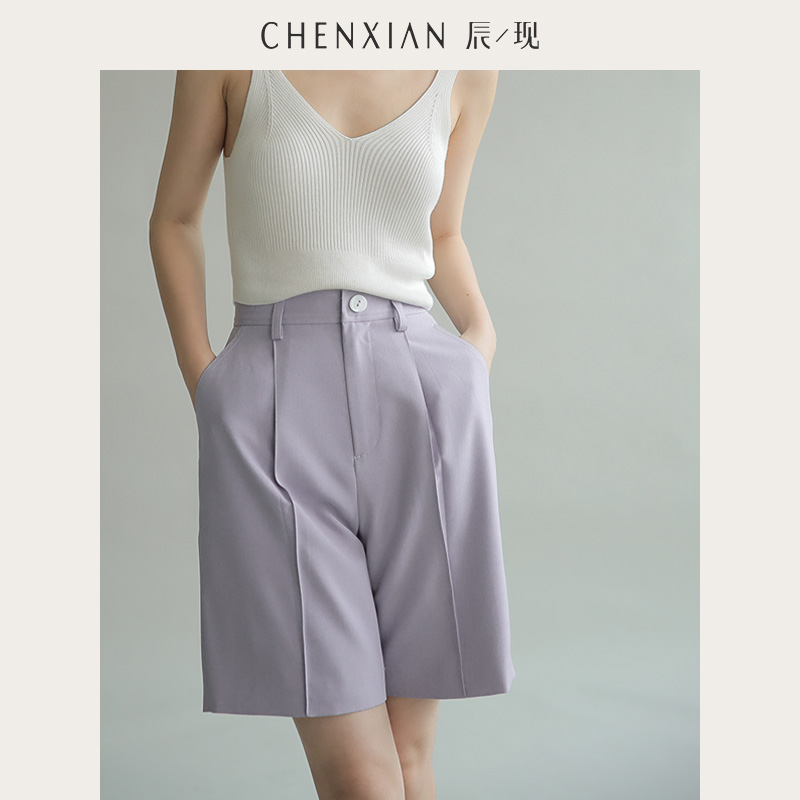 宽松阔腿裤 短裤 百慕大高腰棉麻肌理西装 休闲五分裤 到手159元