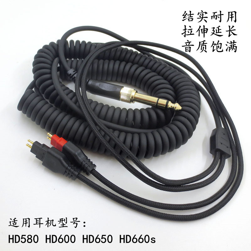 HD580耳机线音频线6.35插头弹簧线 HD600 适用于森海HD660s HD650