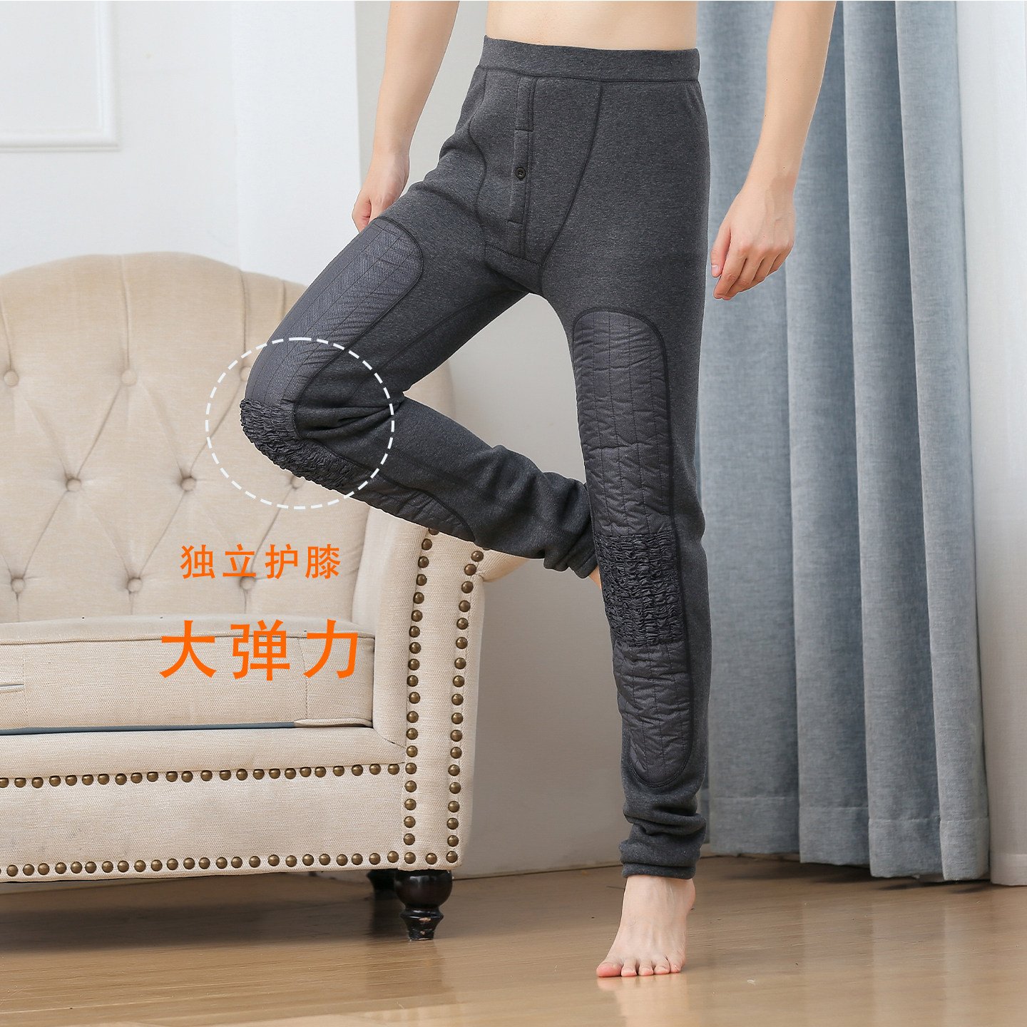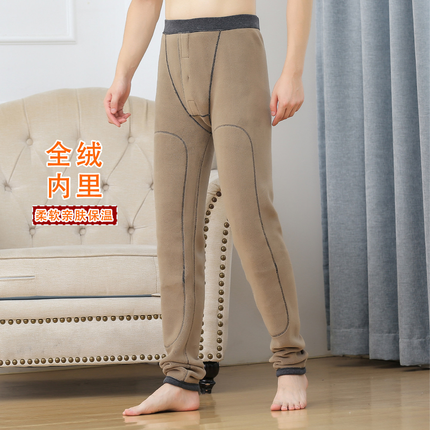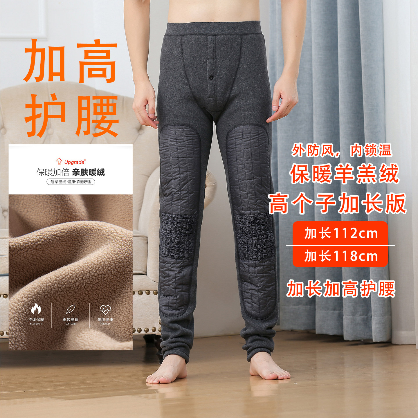 加大护膝2178 锁温高腰加长棉裤 高个子加长保暖裤 男羊羔绒保暖裤