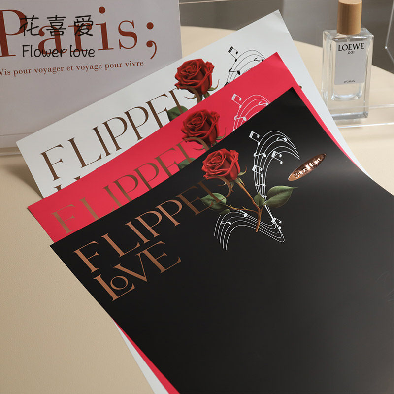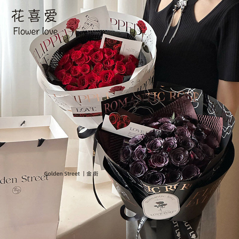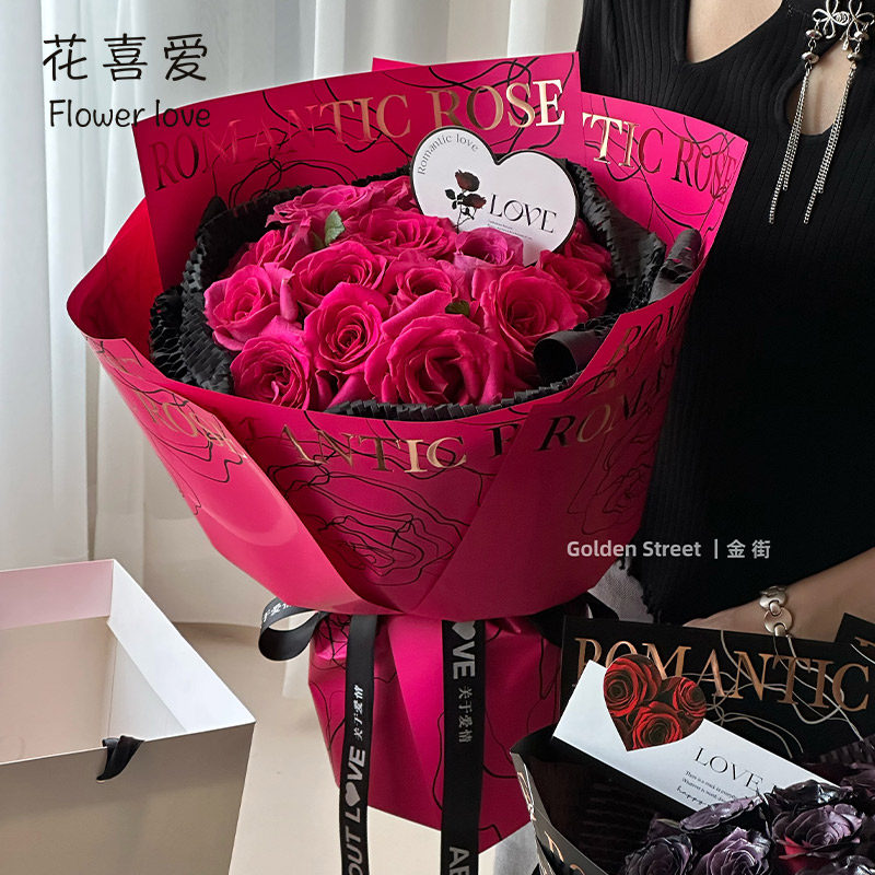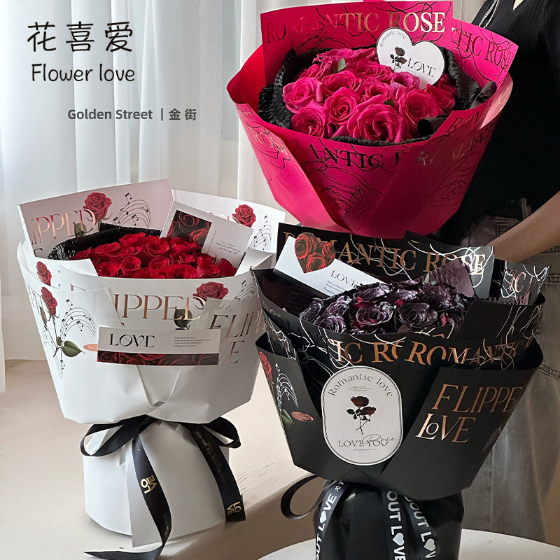 花喜爱玫瑰烫金包装 材料 纸烫金贵族包花纸英文包花纸防水鲜花包装