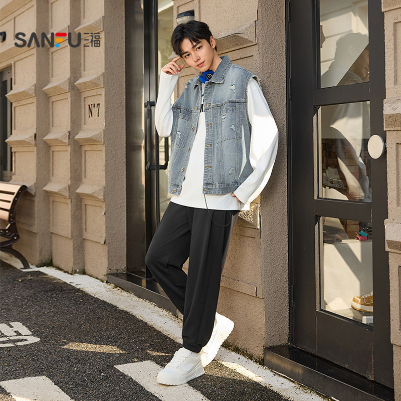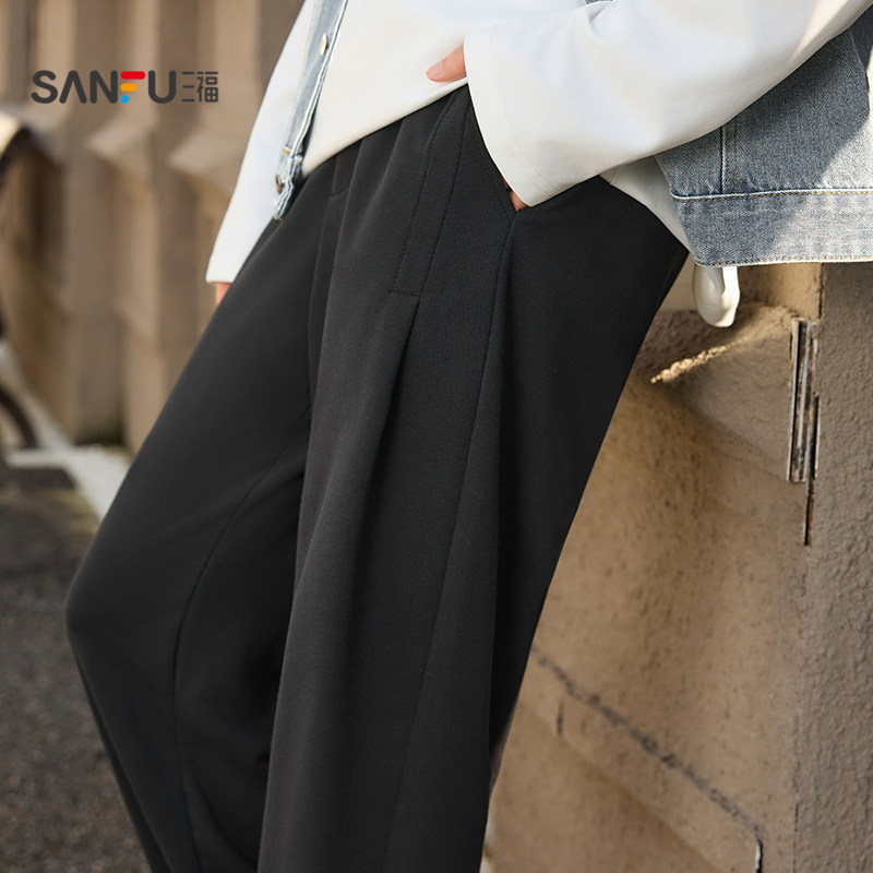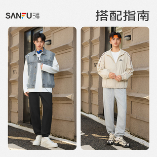 男抽绳运动风束脚裤 休闲裤 针织卫裤 宽松长裤 子 三福2026春季 裤 新款