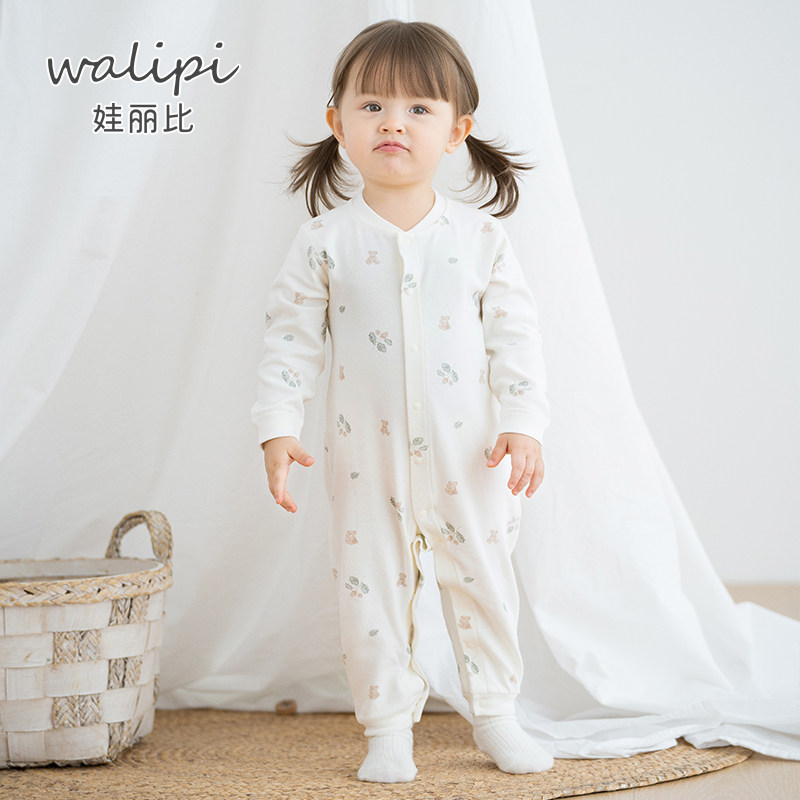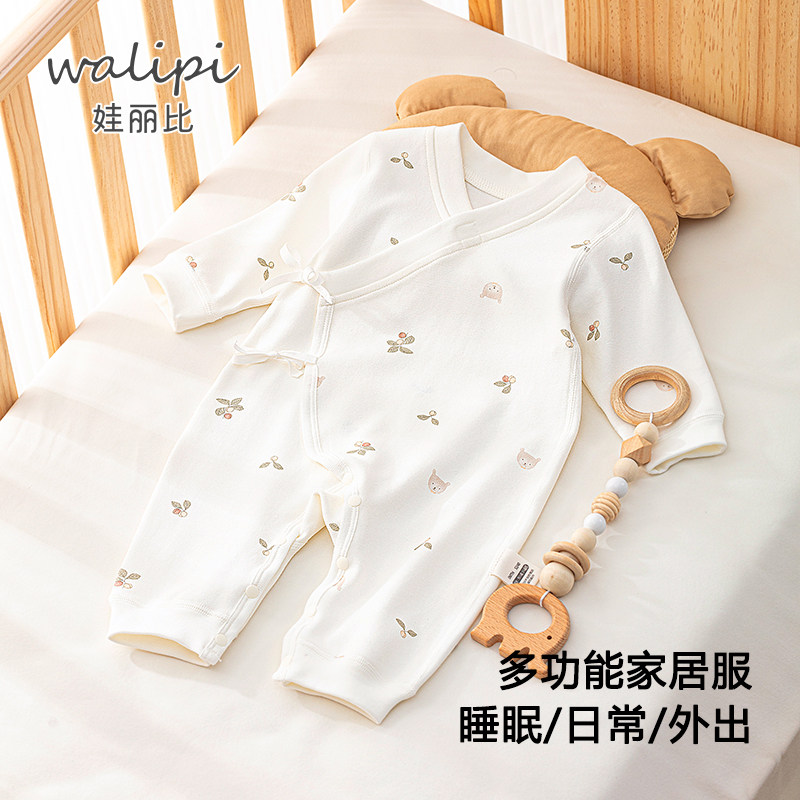 娃丽比婴儿连体衣服春秋装 满月初生宝宝纯棉新生儿哈衣萌爬服秋装