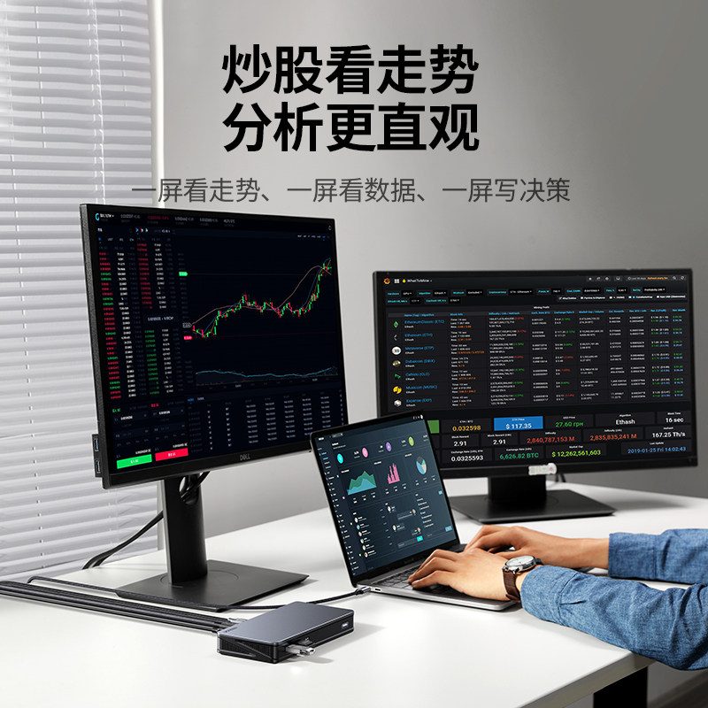 三屏异显笔记本扩展9合1 c转hdmi投屏DP 绿联type c拓展坞type