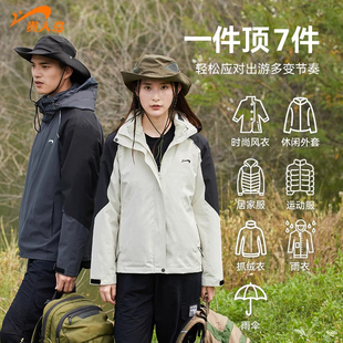骆驼男装 冲锋衣男户外夹克外套三合一三防羽绒内胆徒步登山透气冬
