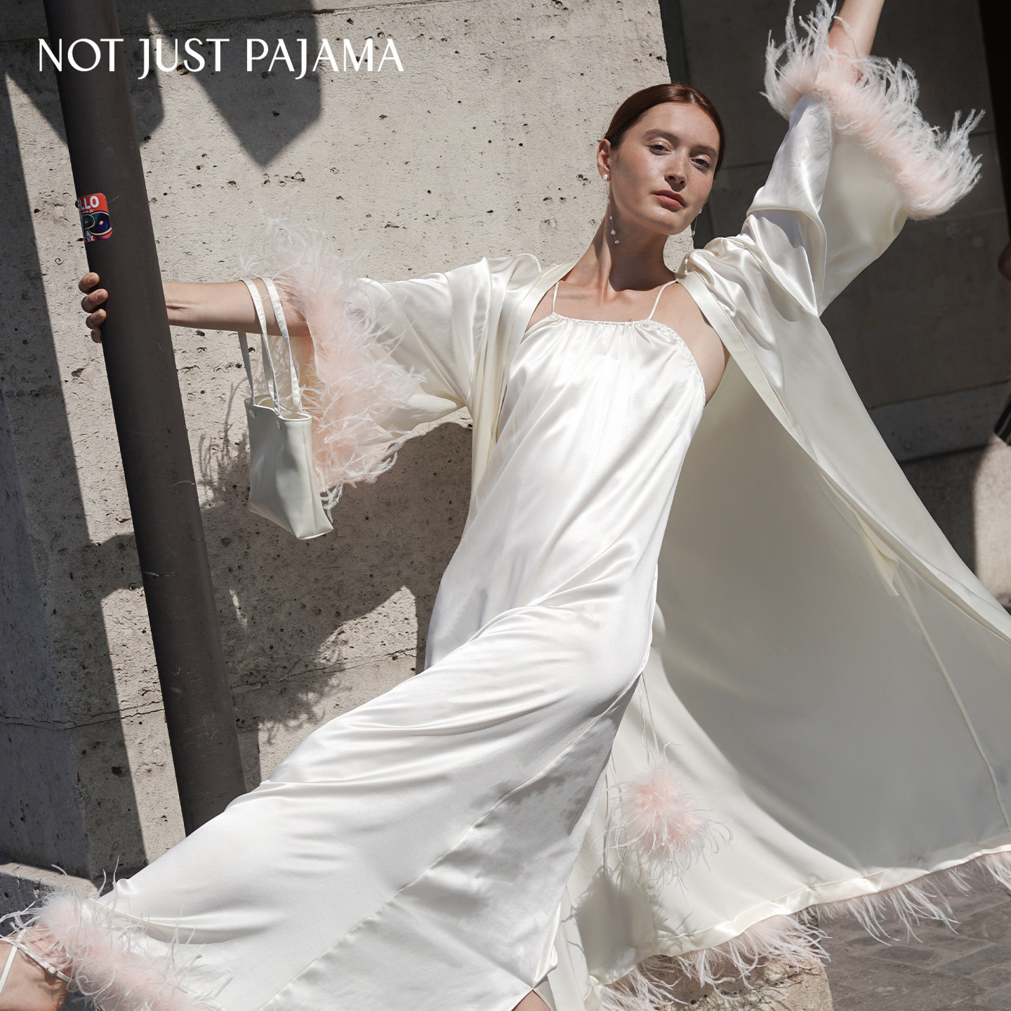 重磅真丝羽毛长款 Pajama婚礼系列 晨袍婚礼新娘晨袍礼服 Just Not